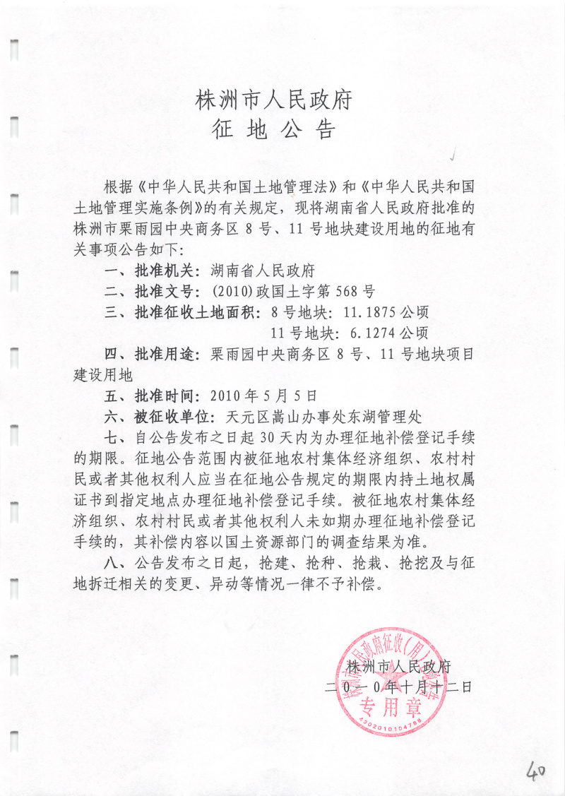 征地公告(栗雨园中央商务区8、11号地块)