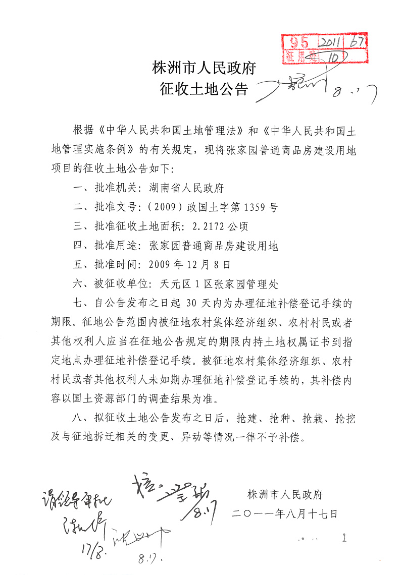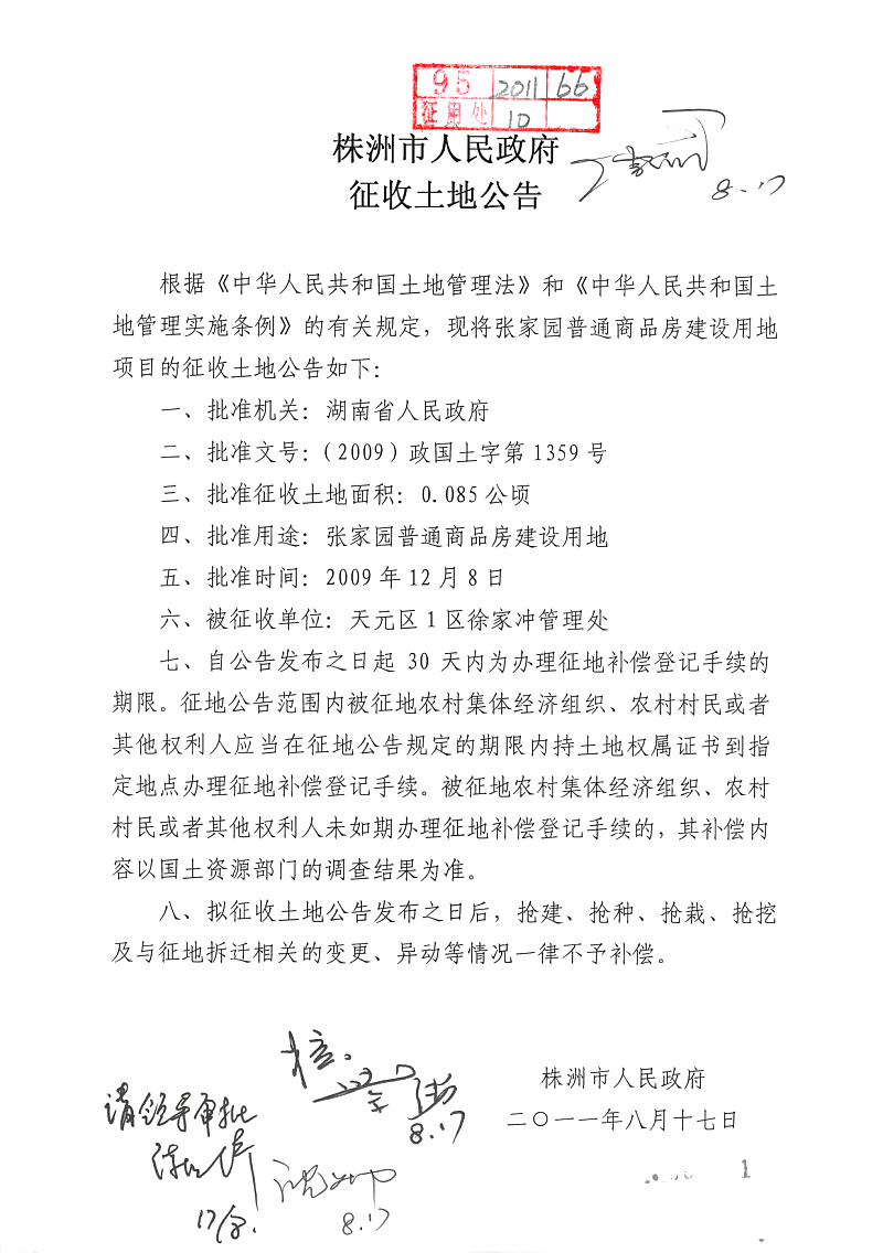 征地公告(张家园普通商品房)