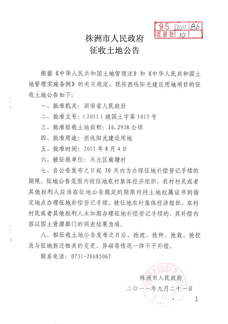 征地公告(西线阳光16.2938公顷)