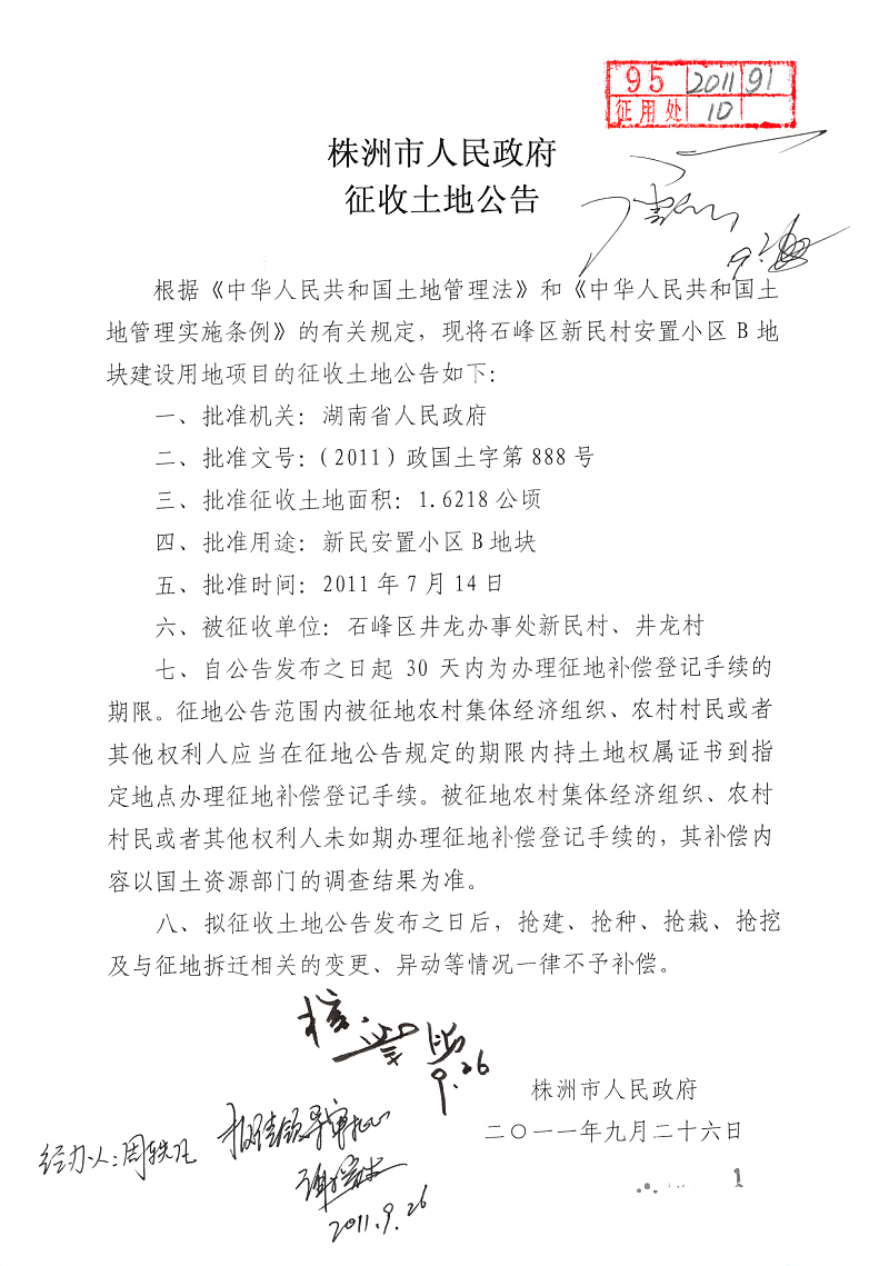 征地公告(石峰区新民安置小区B地块1.6218公顷)