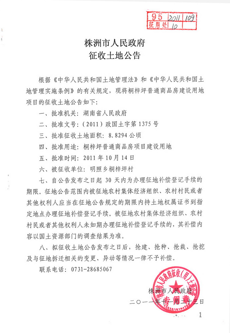 征地公告(桐梓坪普通商品房8.8294公顷)