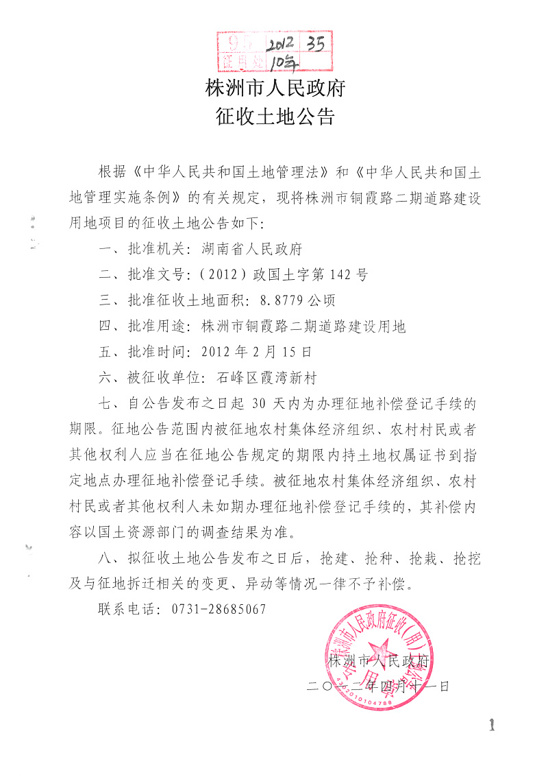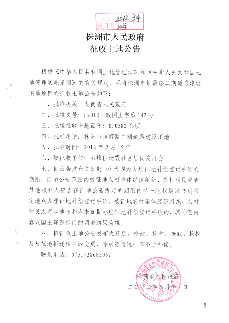 征地公告(铜塘路二期)