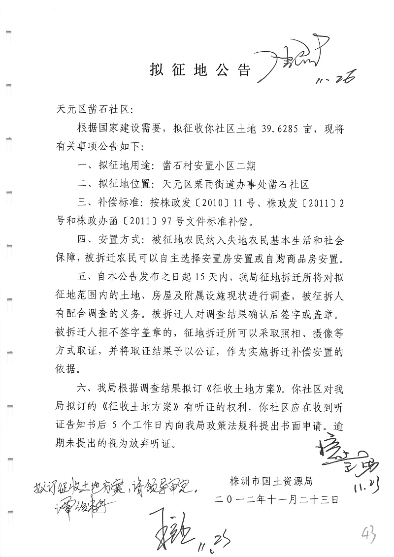 拟征地公告(凿石村安置小区二期39.6285亩)