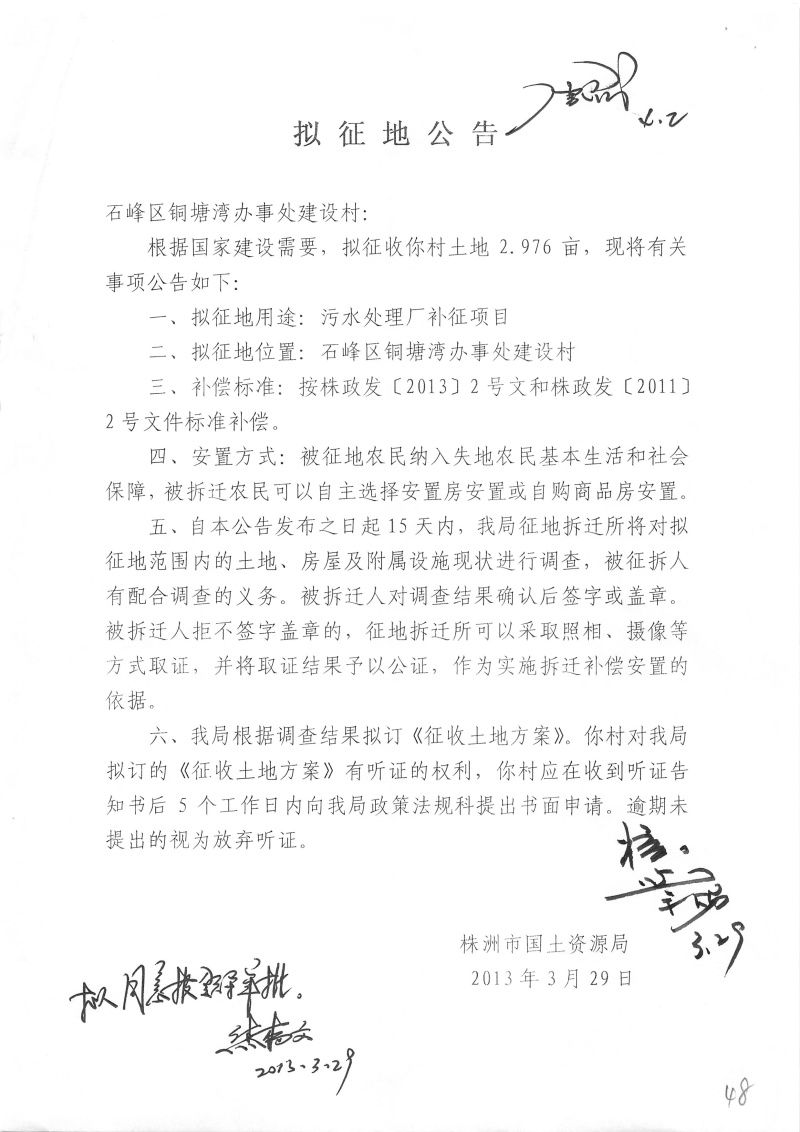 拟征地公告(污水处理厂补征2.976亩)