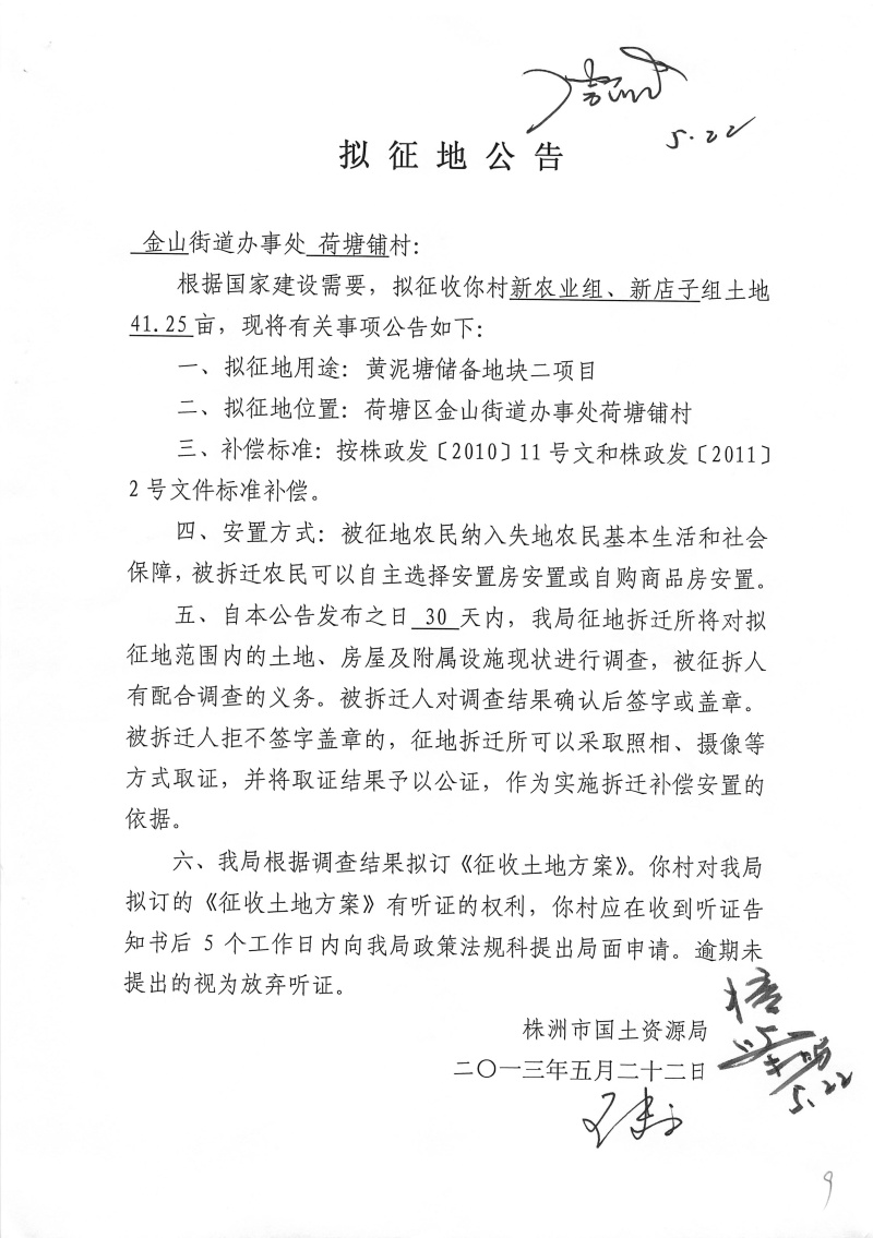 拟征地公告(黄泥塘储备地块二41.25亩)