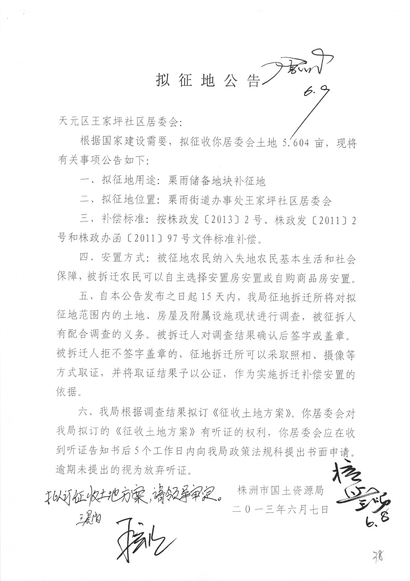 拟征地公告(栗雨储备地块补征地5.604亩)