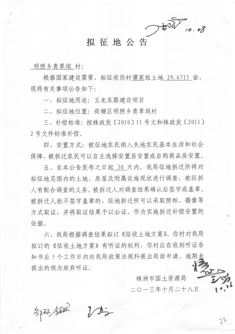 拟征地公告(玉龙东路29.6715亩)
