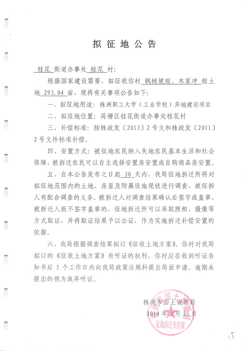 拟征地公告(株洲职业大学异地建设293.04亩)