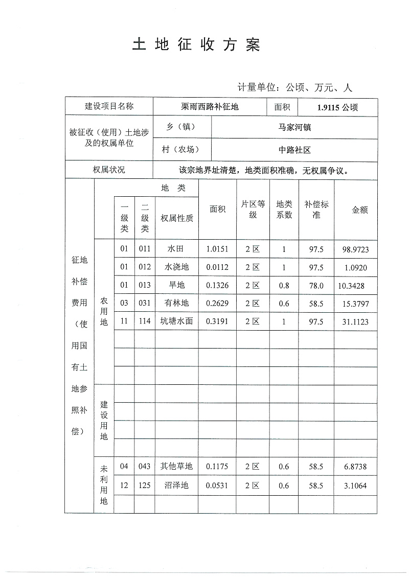 栗雨西路补征地项目(一书四方案)