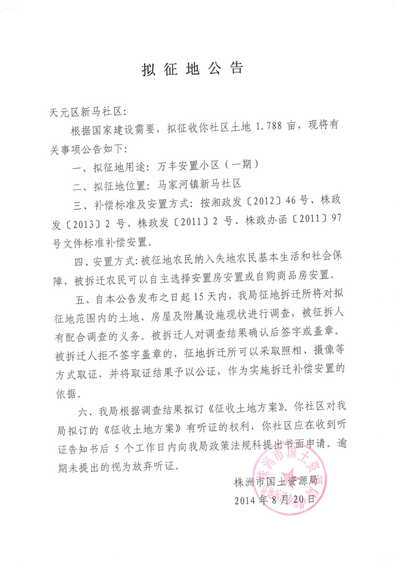 拟征地公告(万丰安置小区一期)
