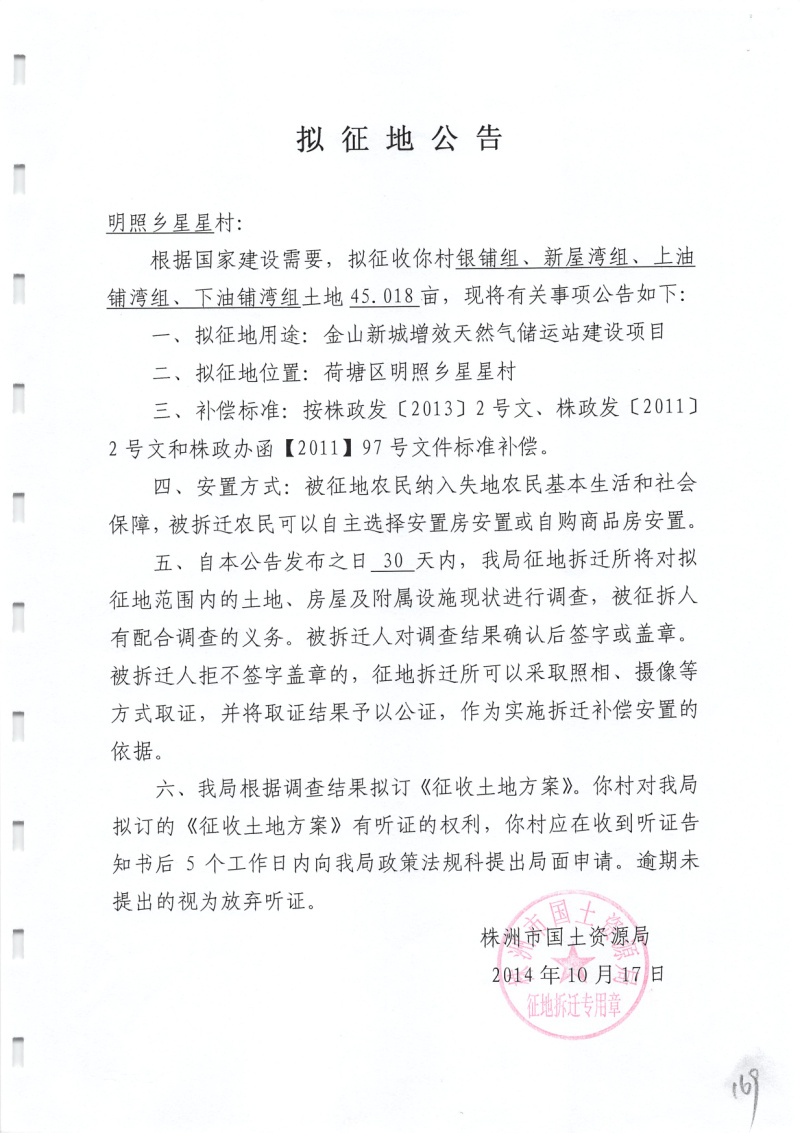 拟征地公告(金山新城增效天然气储运站45.018亩)
