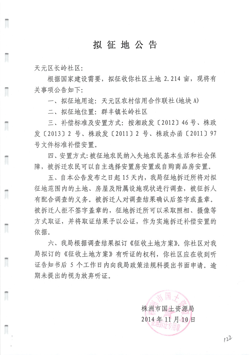 拟征地公告(天元区农村信用合作联社地块A2.214亩)