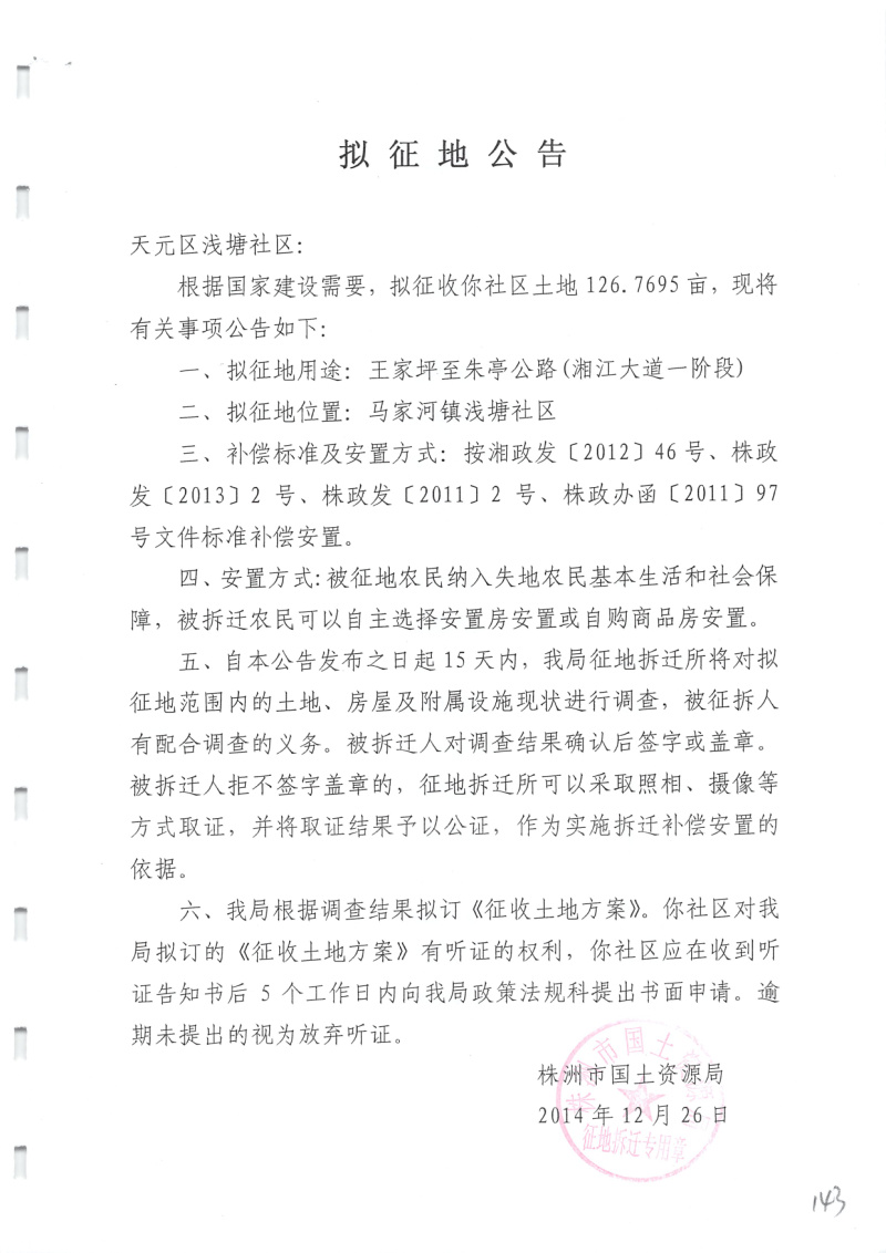 拟征地公告(王家坪至朱亭公路湘江大道一阶段)