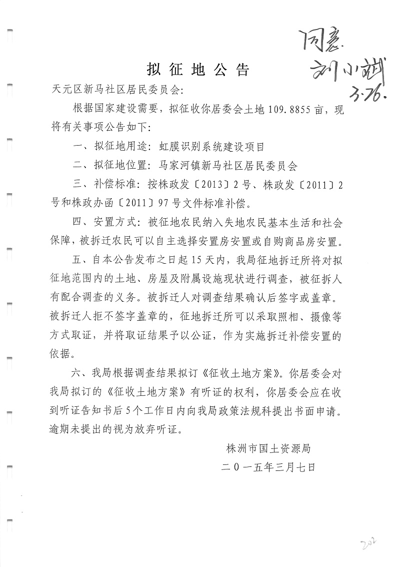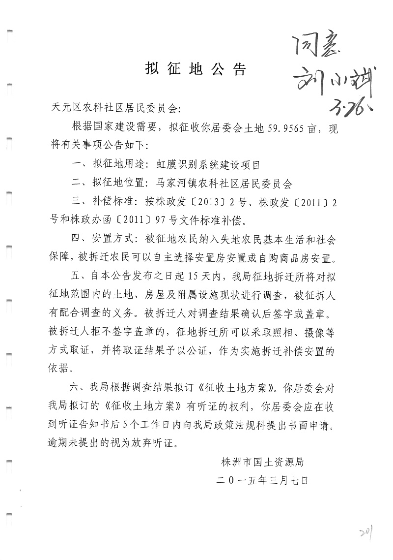 拟征地公告(虹膜识别系统)