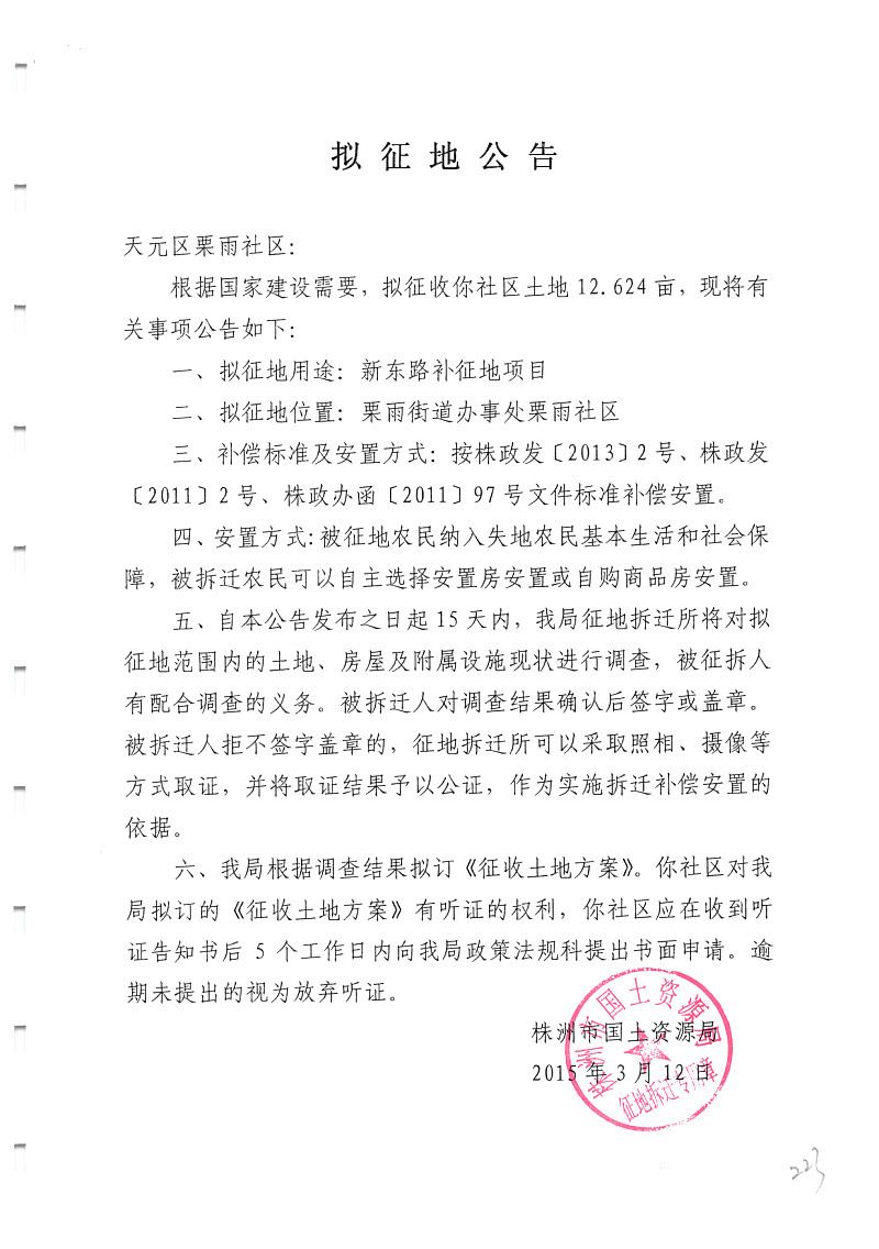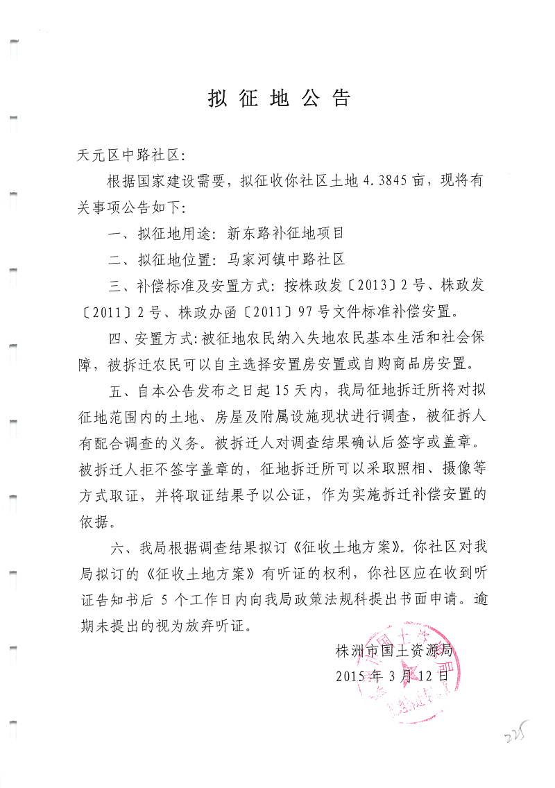 拟征地公告(新东路补征地)