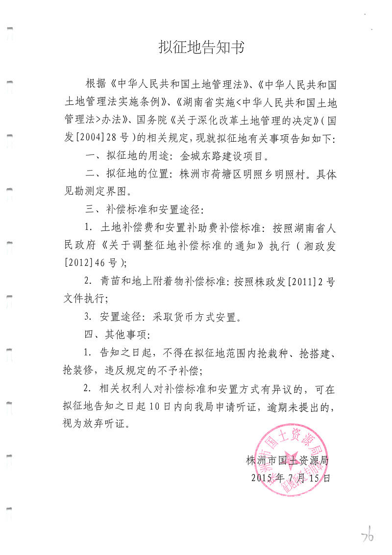 拟征地告知书(金城东路)明照村