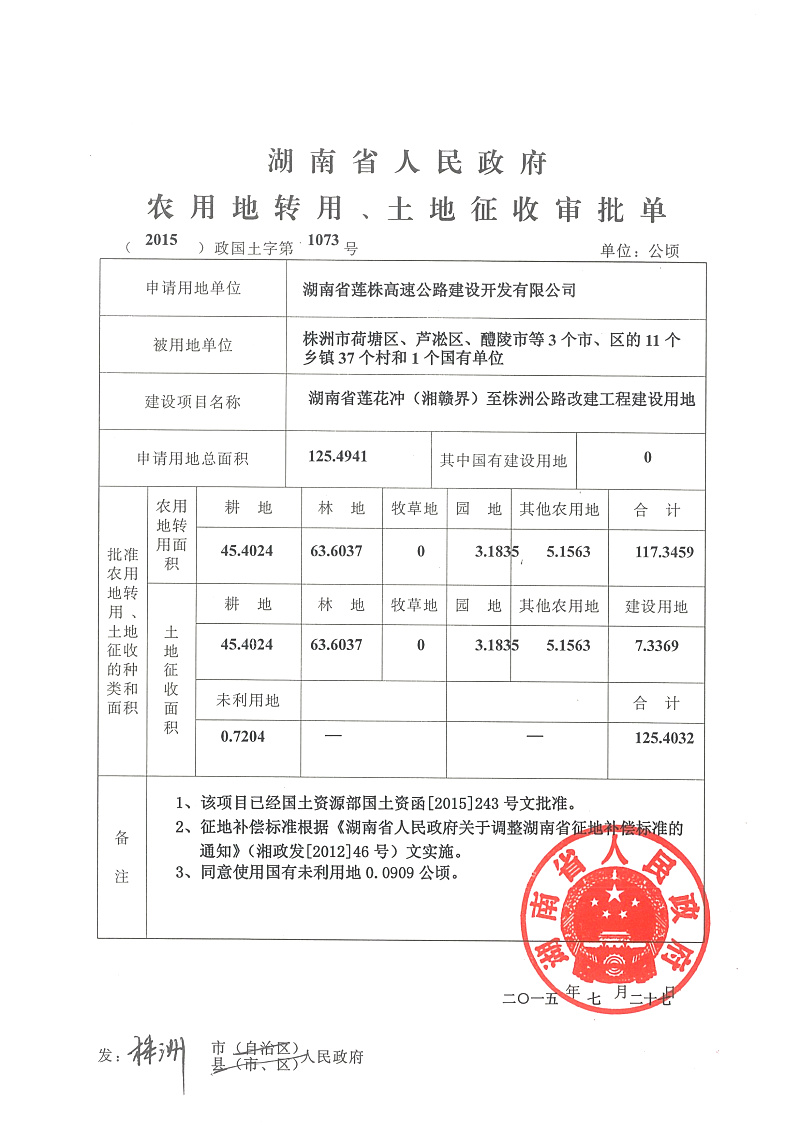 湖南省莲花冲(湘赣界)至株洲公路改建工程(审批单)