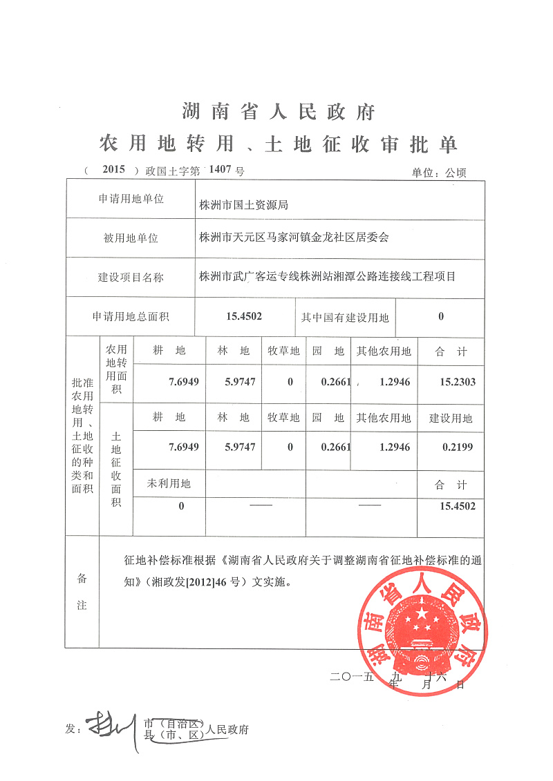 株洲市武广客运专线株洲站湘潭公路连接线工程项目 (审批单)