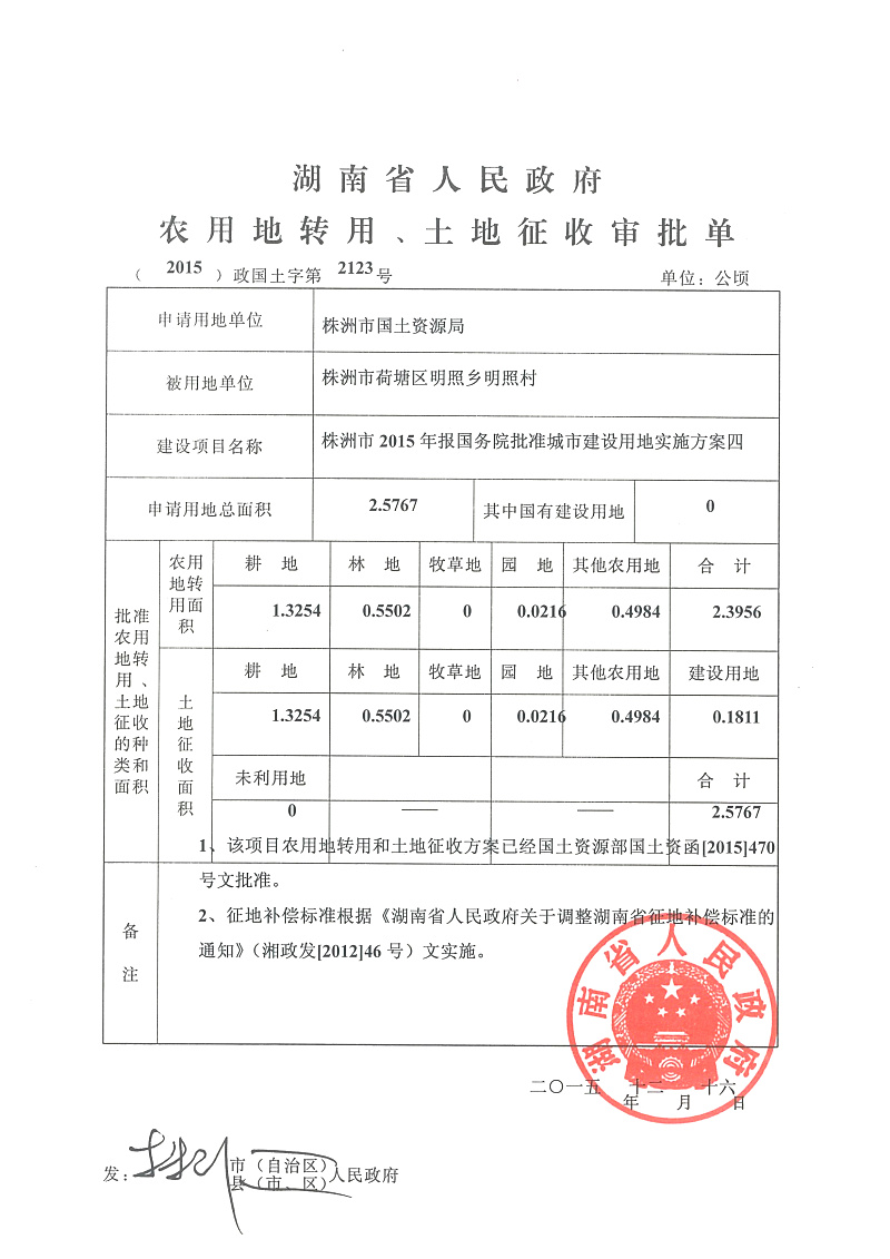 株洲市2015年报国务院批准城市建设用地实施方案四(审批单)