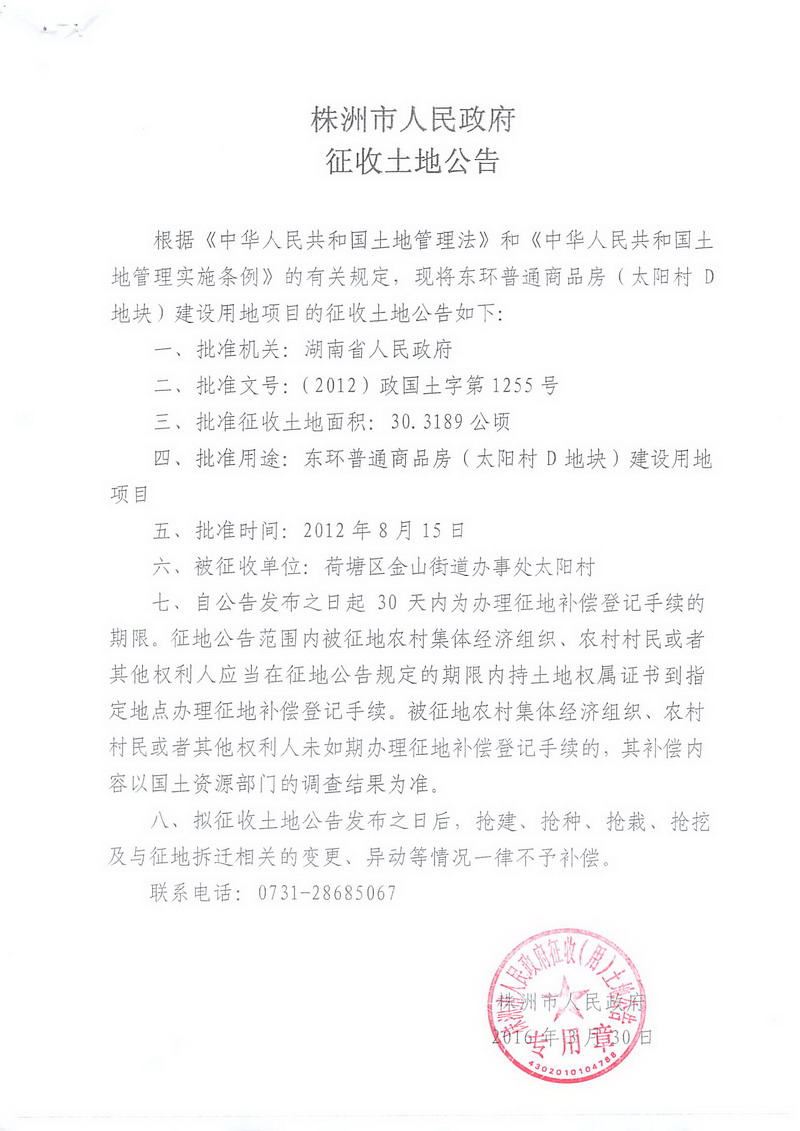 征地公告-东环普通商品房(太阳村D地块)