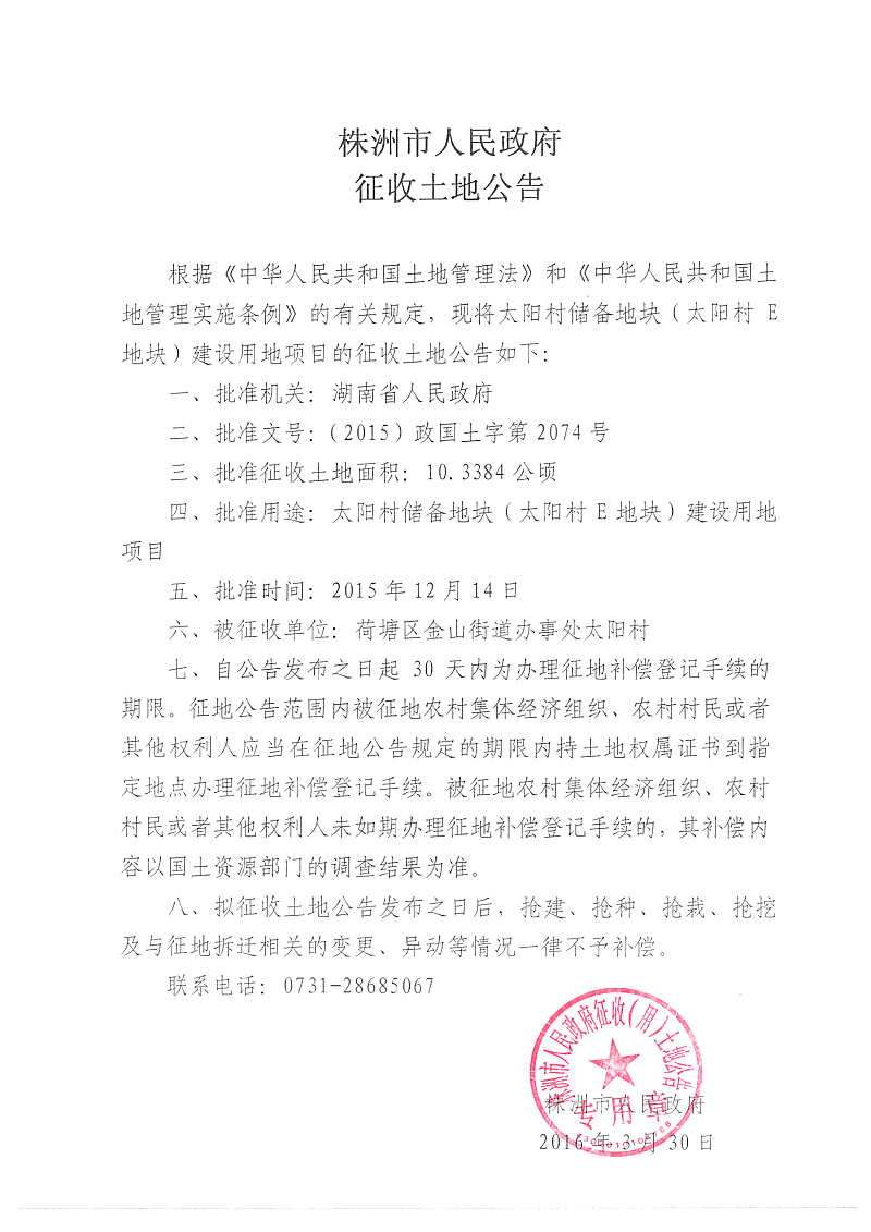征地公告-太阳村储备地块(太阳村E地块)