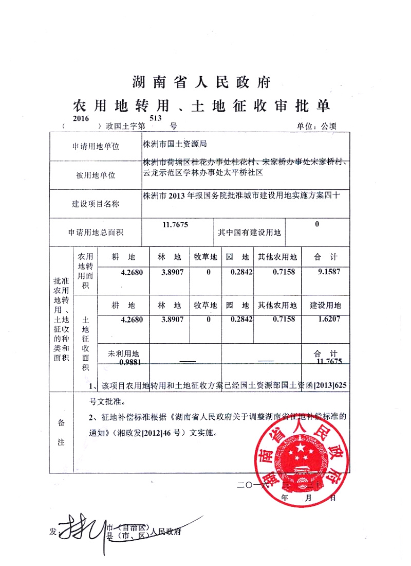 株洲市2013年报国务院批准城市建设用地实施方案四十(2016)政国土字第531号