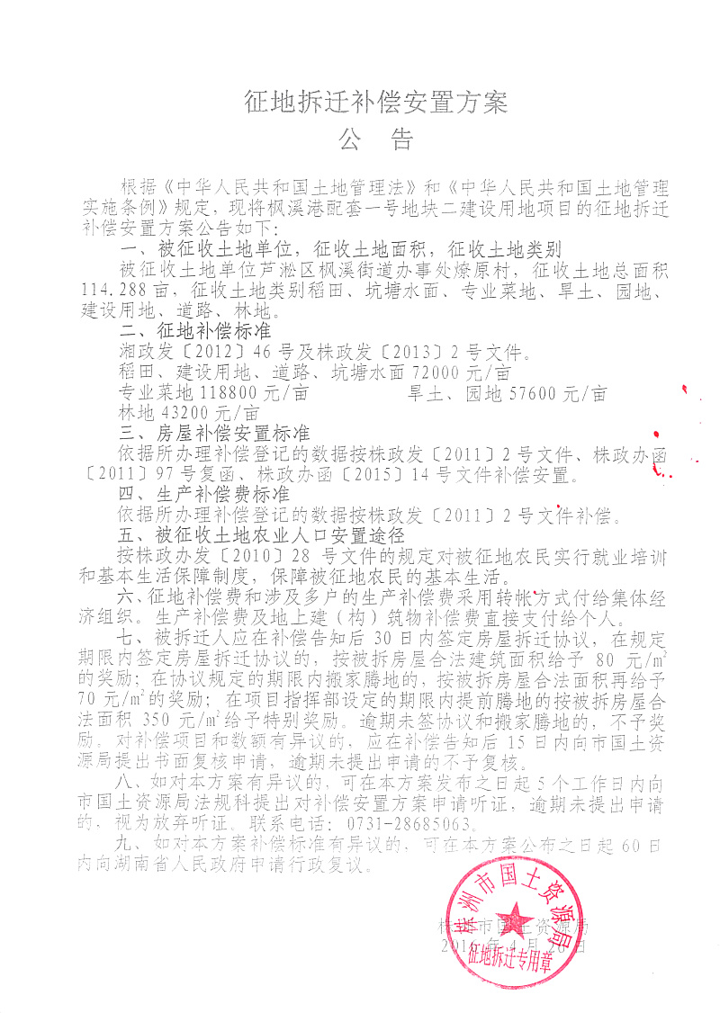 安置公告-枫溪港配套一号地块二燎原村