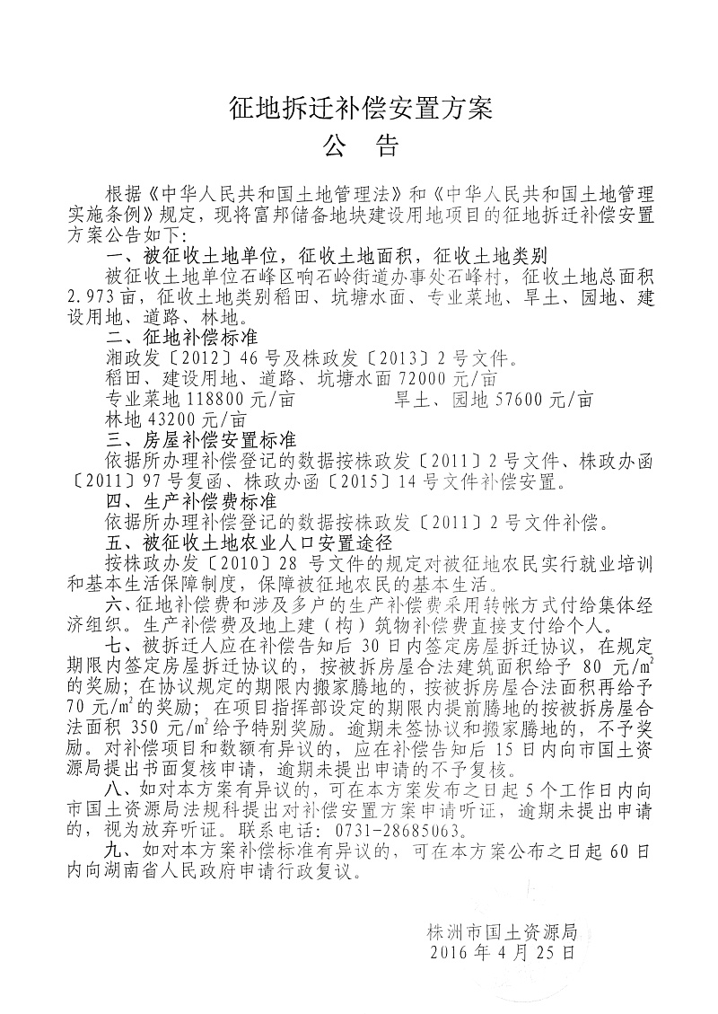 安置公告-富邦储备地块