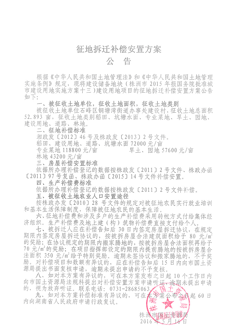 安置公告-建设储备地(株洲市2015年报国务院实施方案十三)