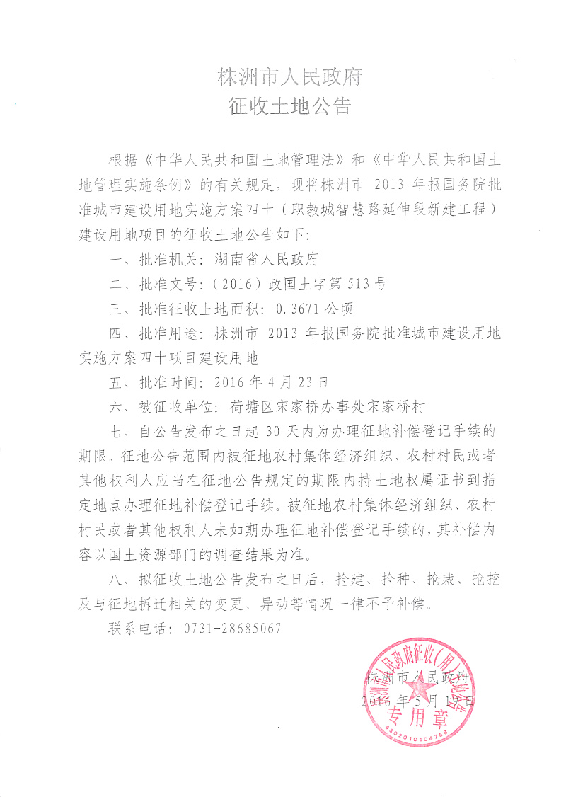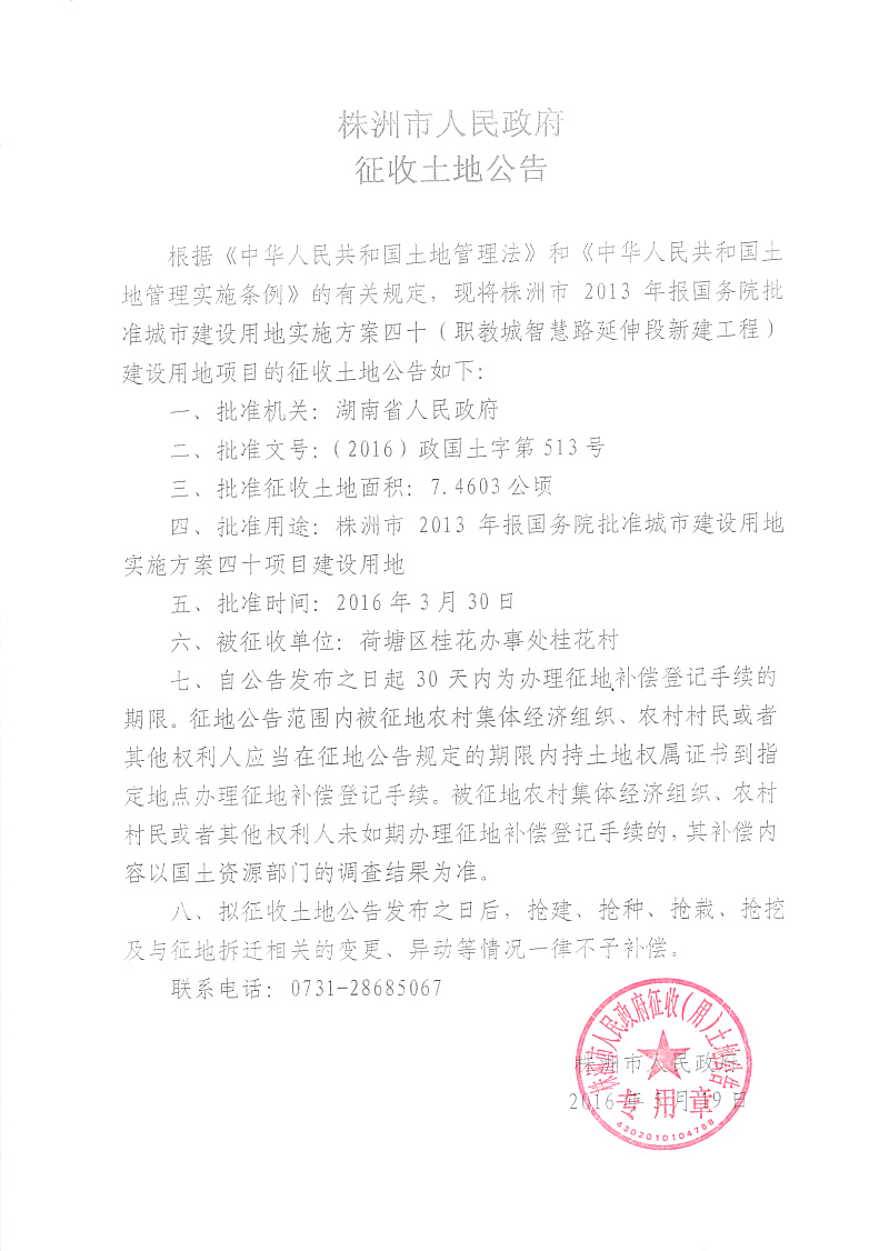 征地公告-2013报国务院实施方案四十(职教城智慧路延伸段新建工程)