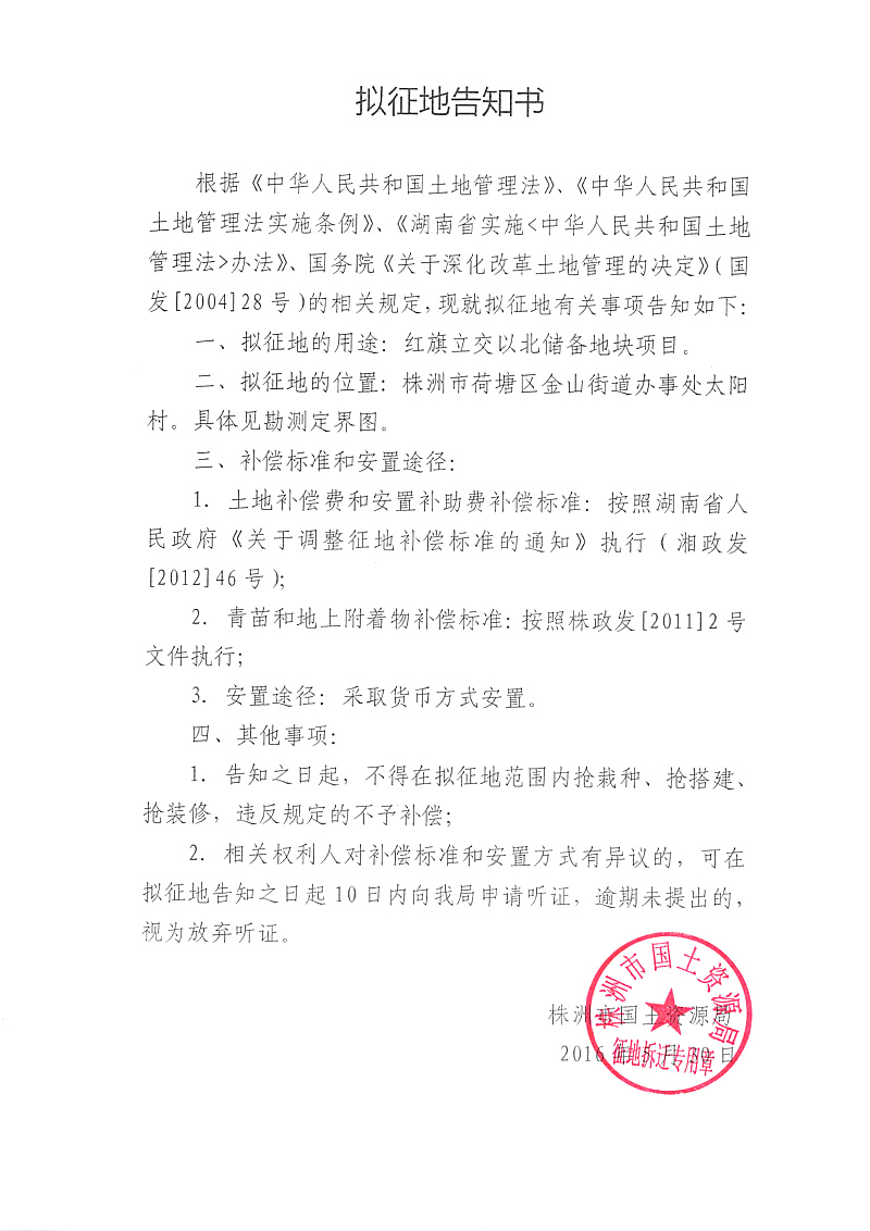 拟征地公告-红旗立交以北储备地