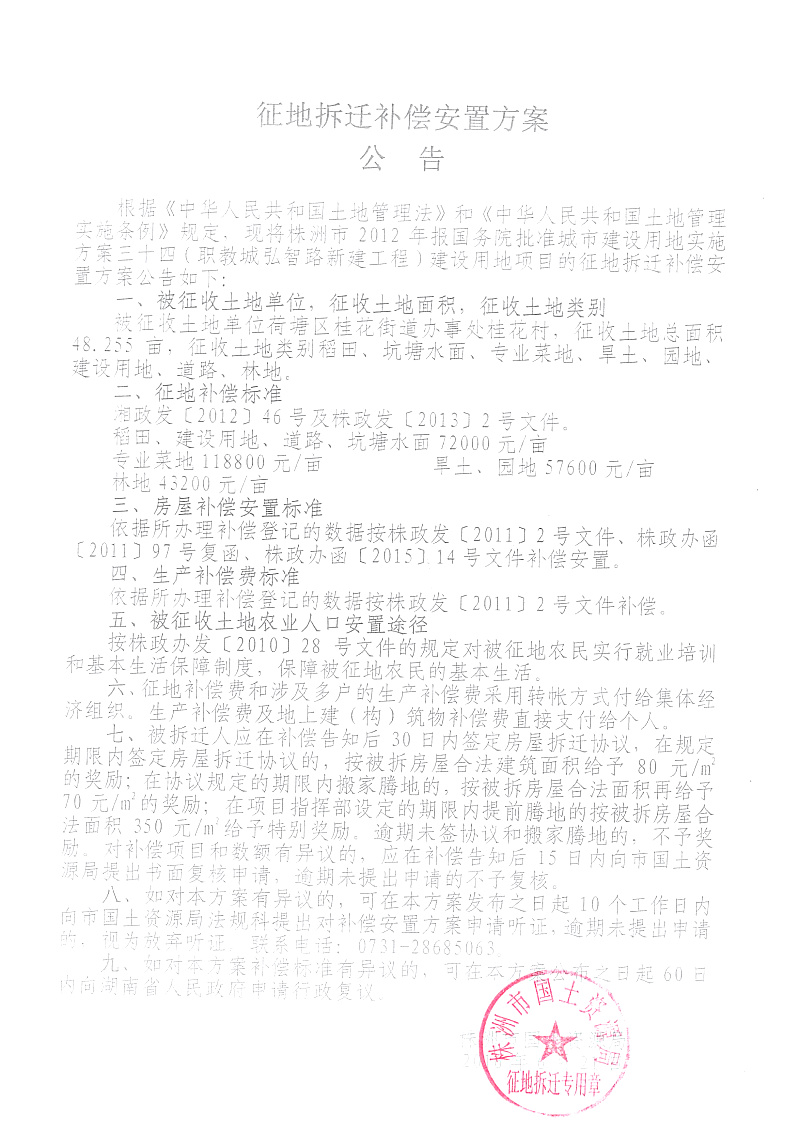 安置公告-2012报国务院实施方案三十(职教城弘智路新建工程)