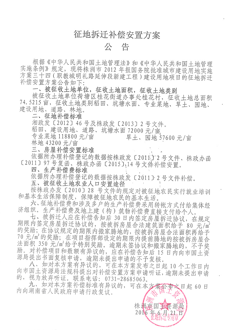 安置公告-2012报国务院实施方案三十(职教城明礼路延伸段新建工程)