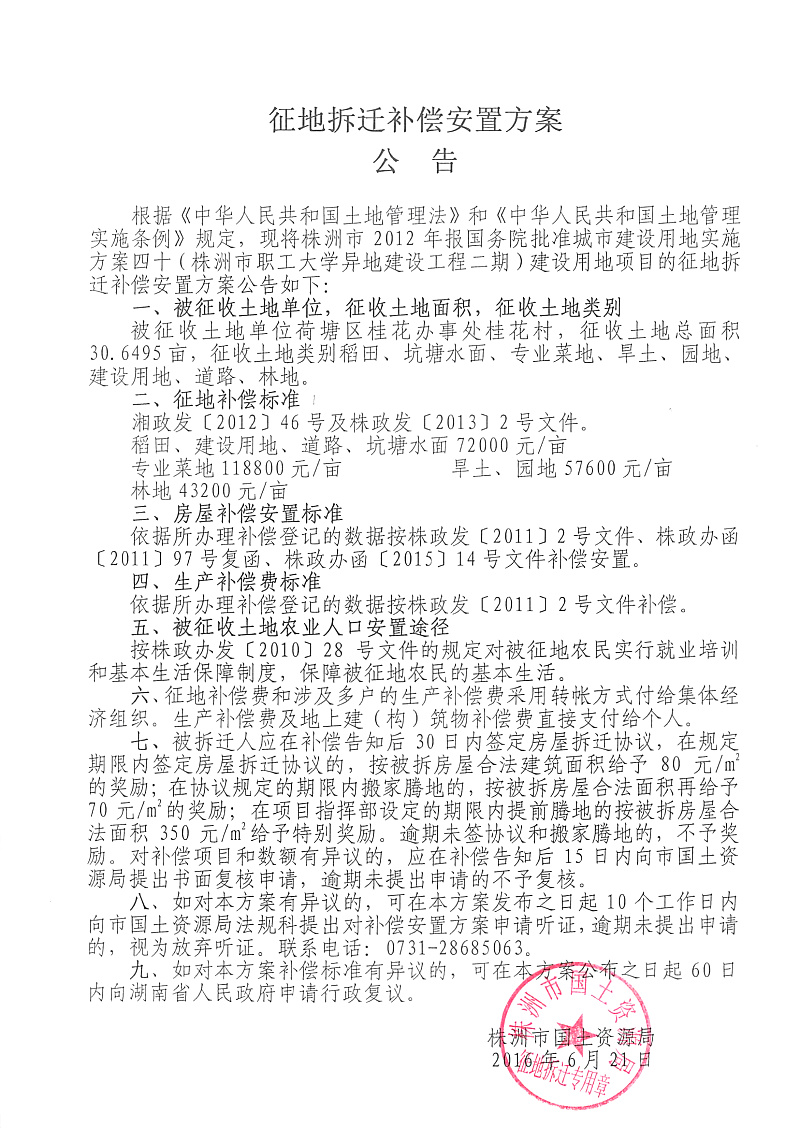安置公告-2012报国务院实施方案四十(株洲市职工大学异地建设工程二期)