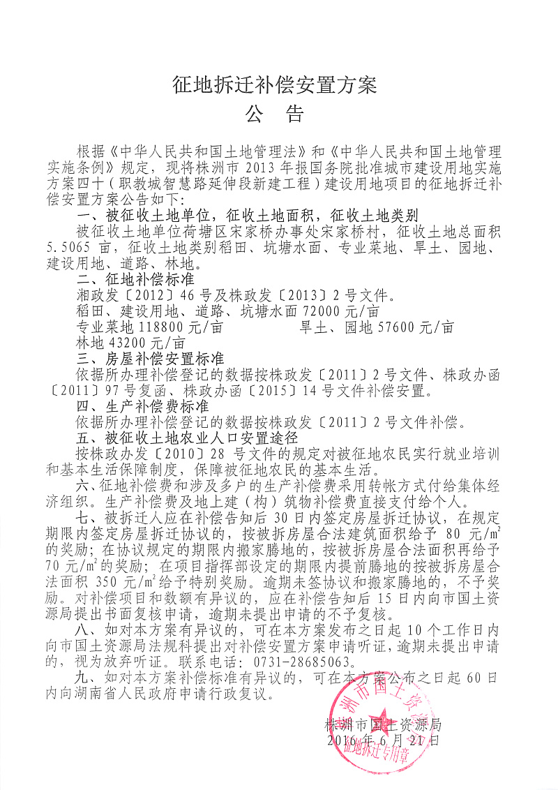 安置公告-2013报国务院实施方案四十(职教城智慧路延伸段新建工程