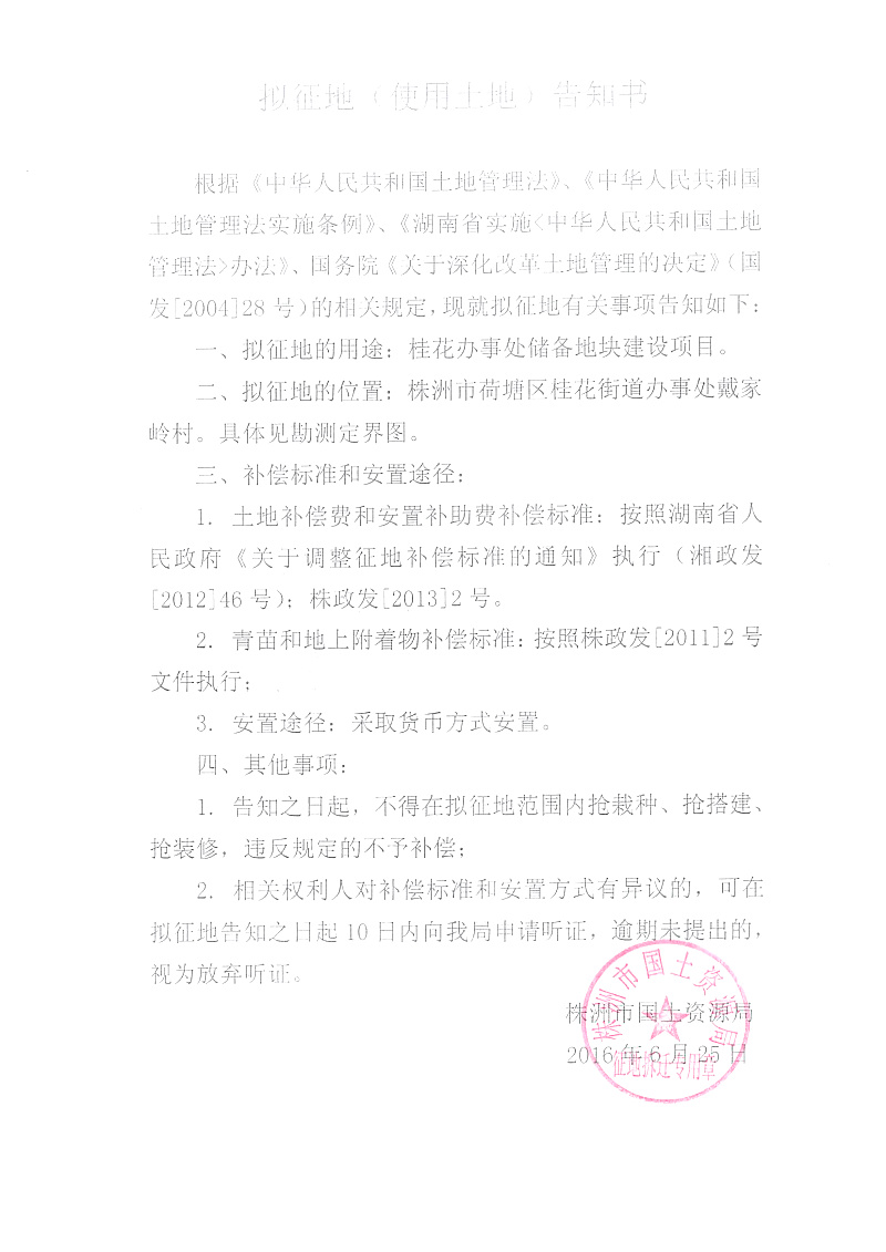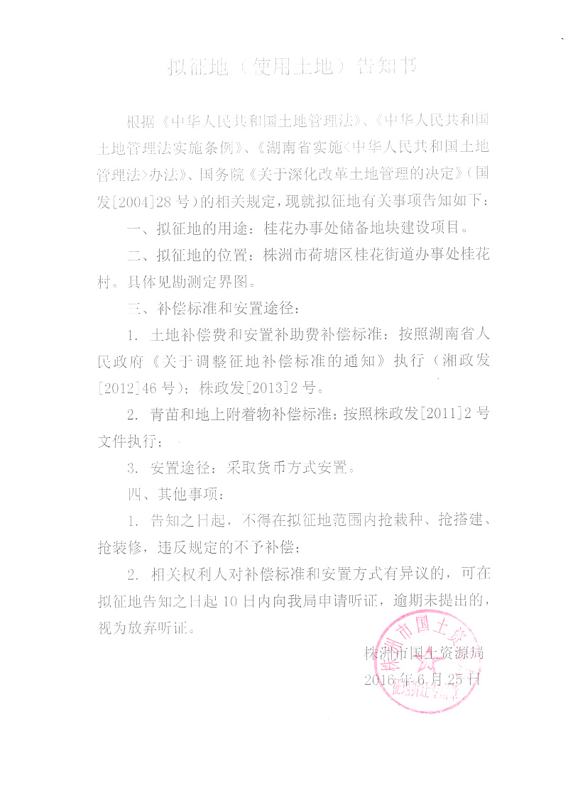 拟征地公告-桂花办事处储备地