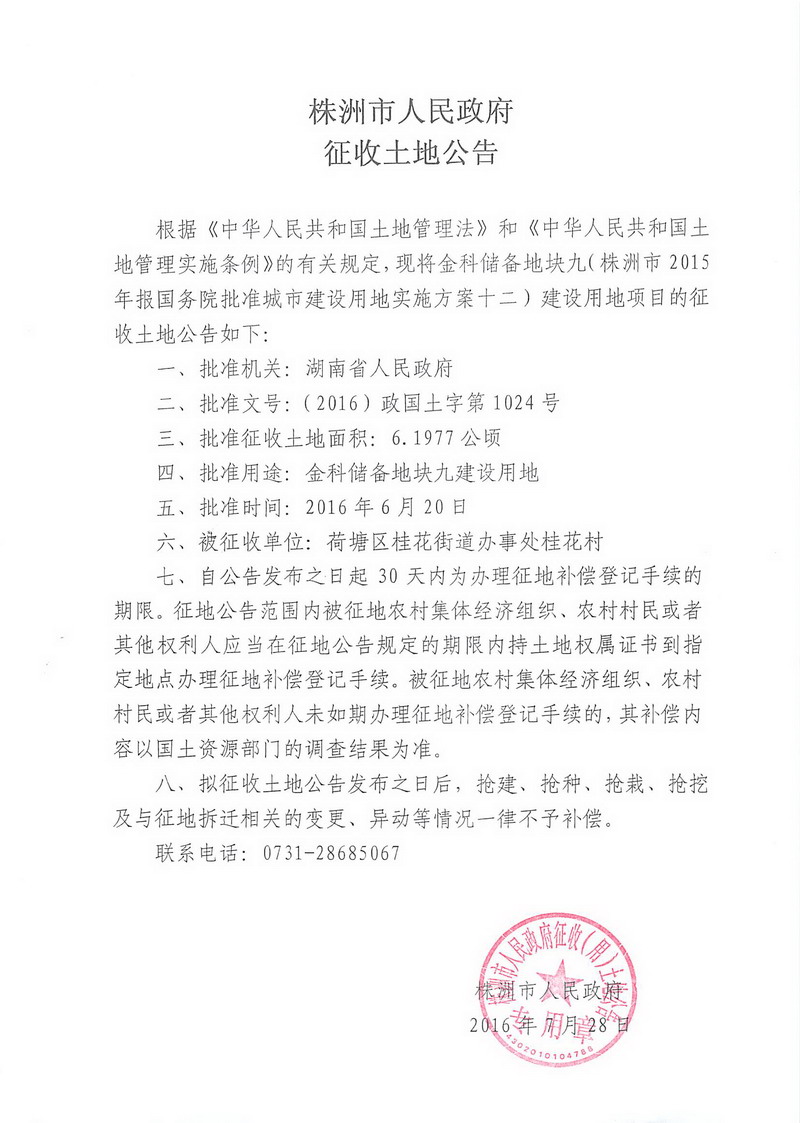 征地公告-金科储备地块九(2015报国务院实施方案十二)