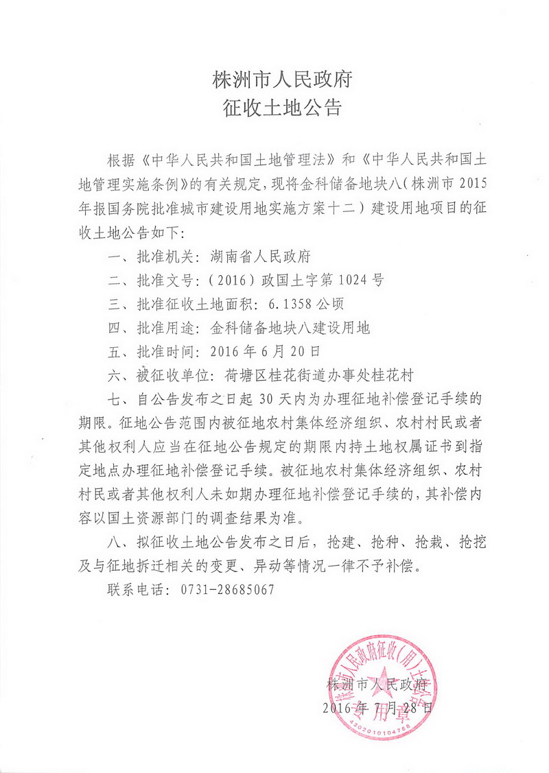 征地公告-金科储备地块八(2015报国务院实施方案十二)