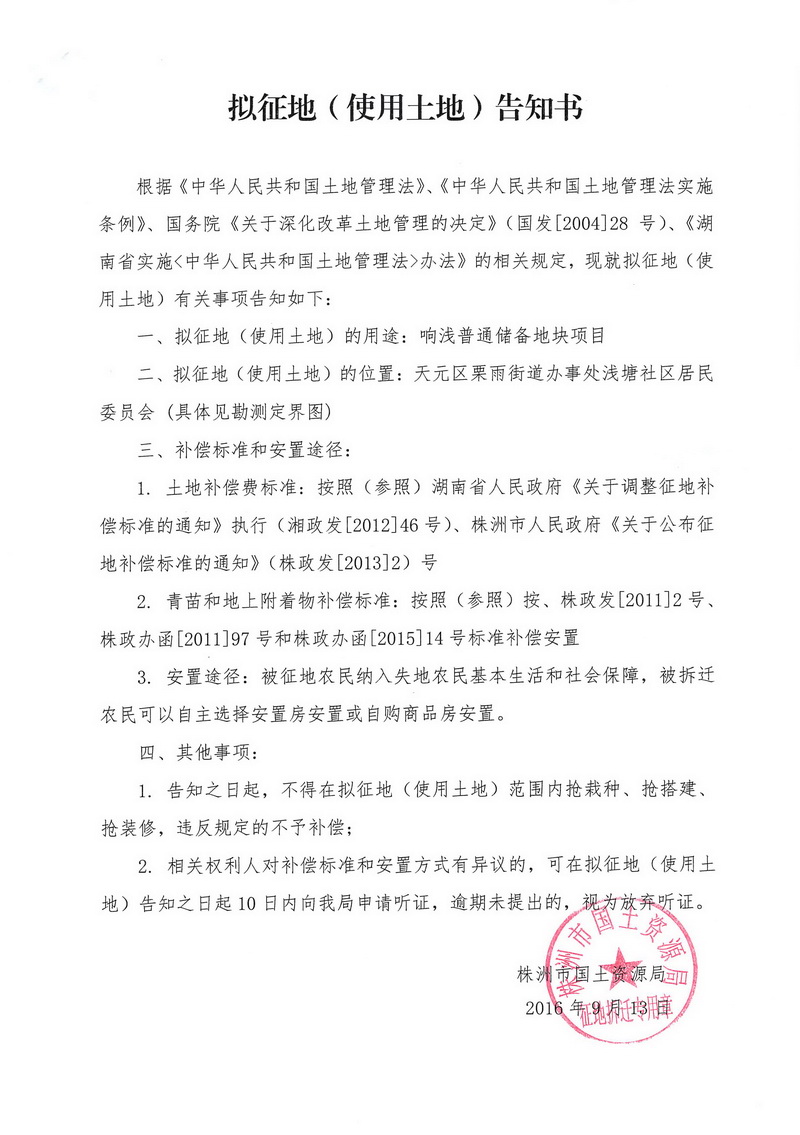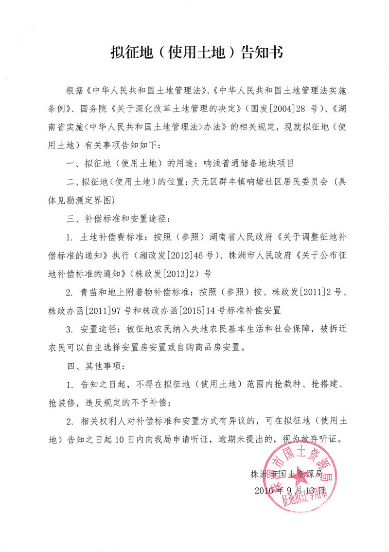 拟征地告知书--响浅普通储备地块