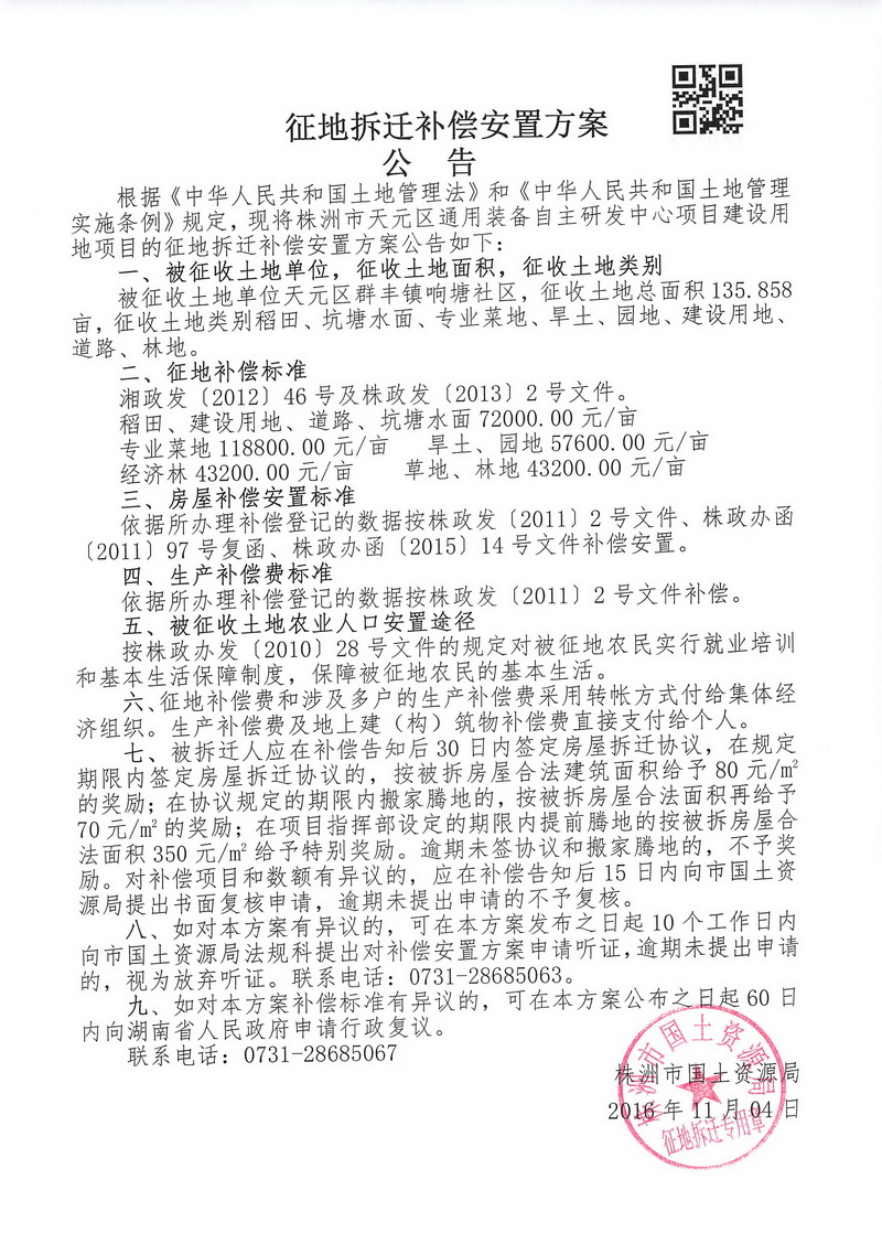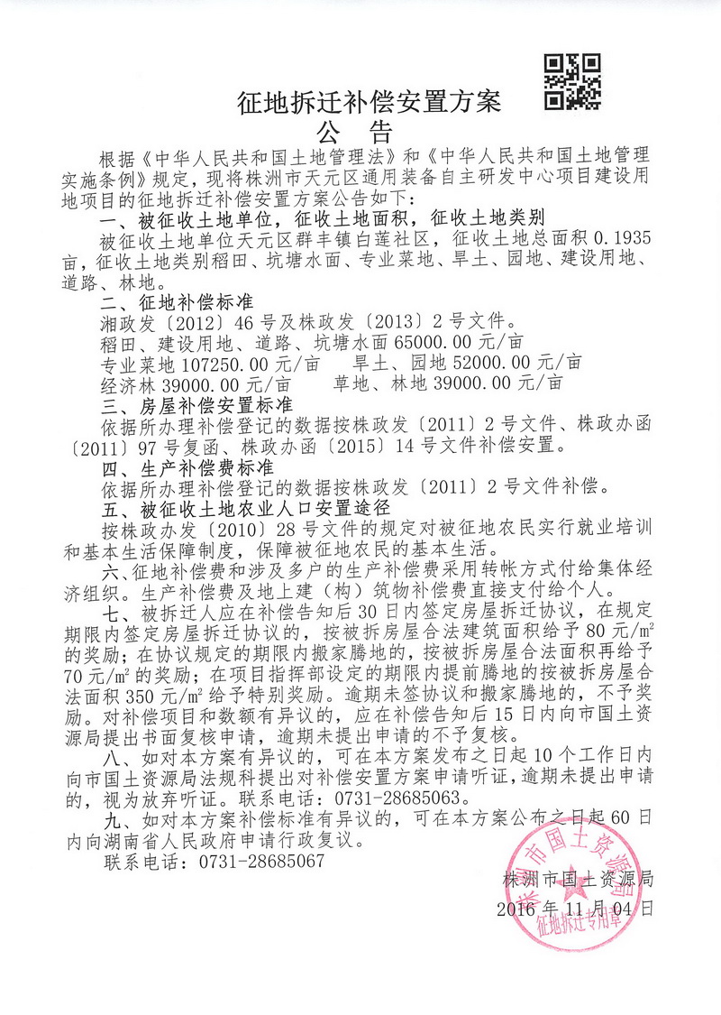 安置公告-株洲市天元区通用装备自主研发中心项目