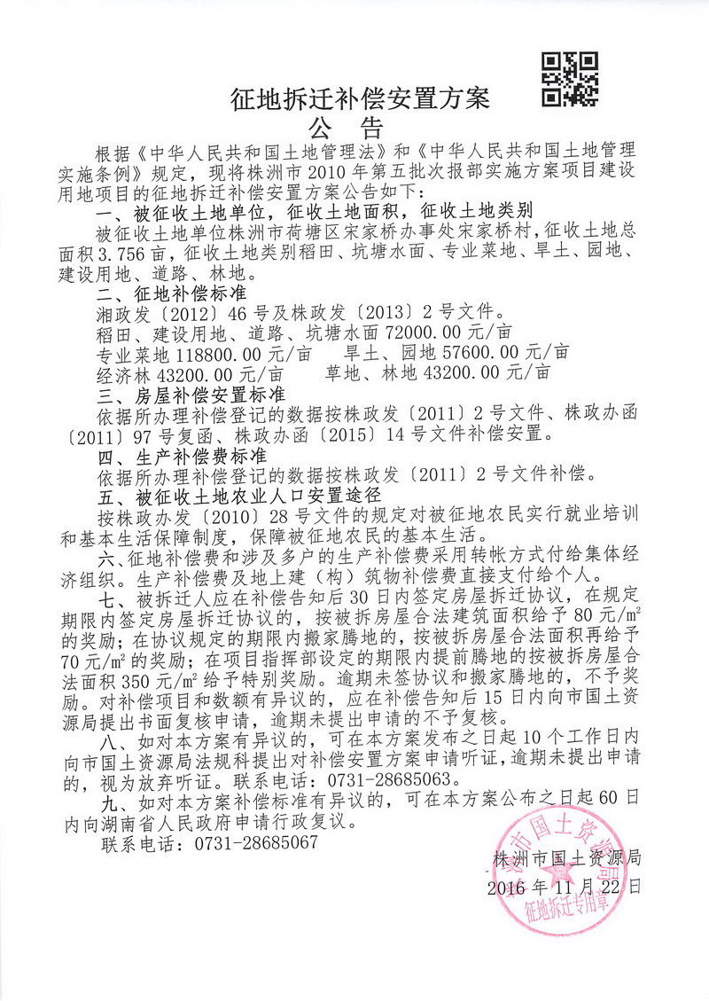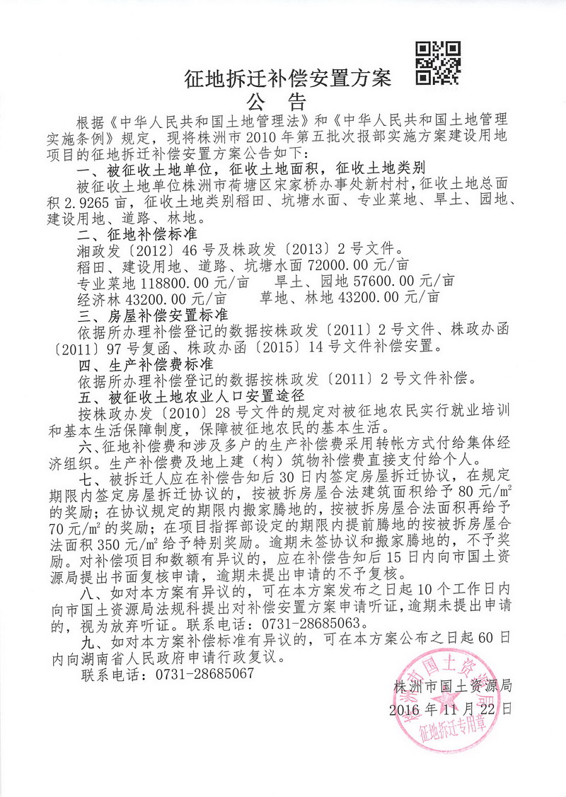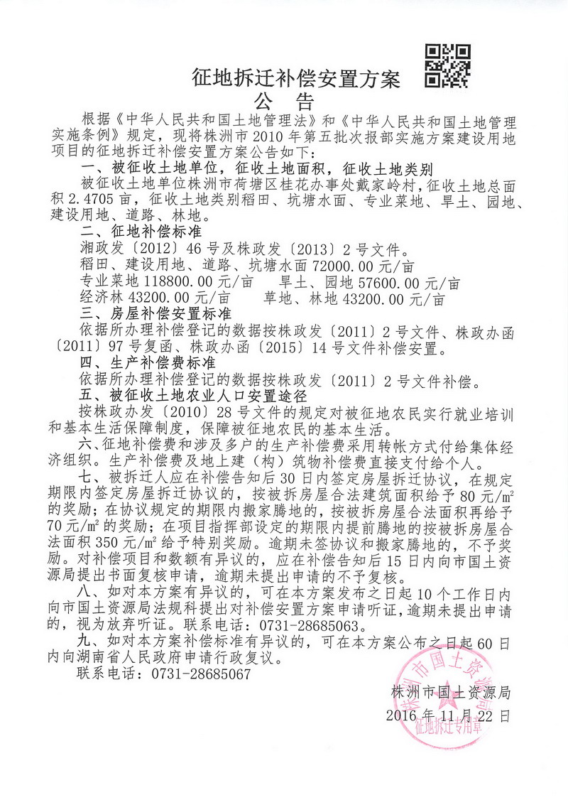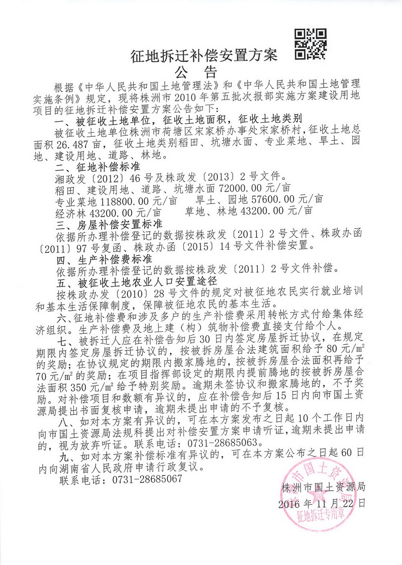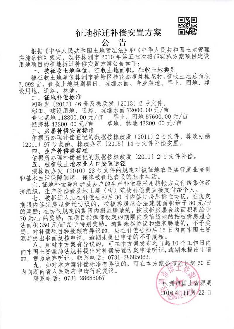 安置公告-株洲市2010年第五批次报部实施方案项目
