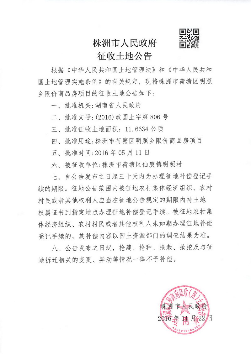 征地公告-株洲市荷塘区明照乡限价商品房项目