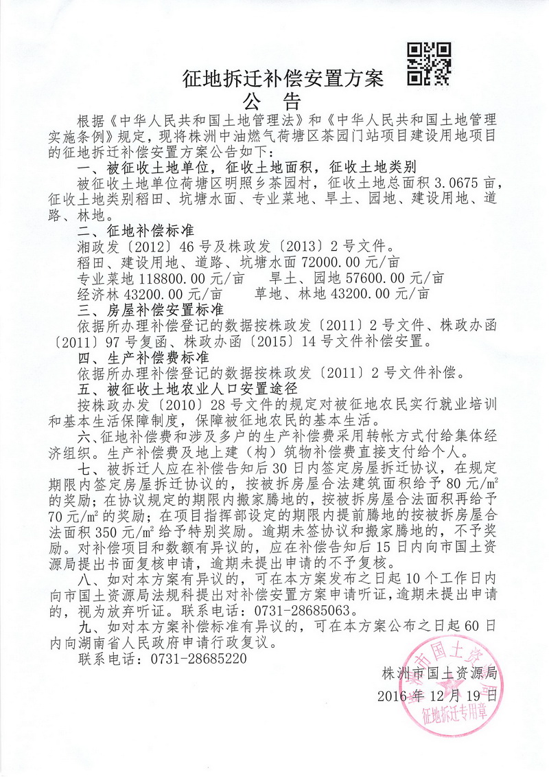 安置公告--株洲中油燃气荷塘区茶园门站项目