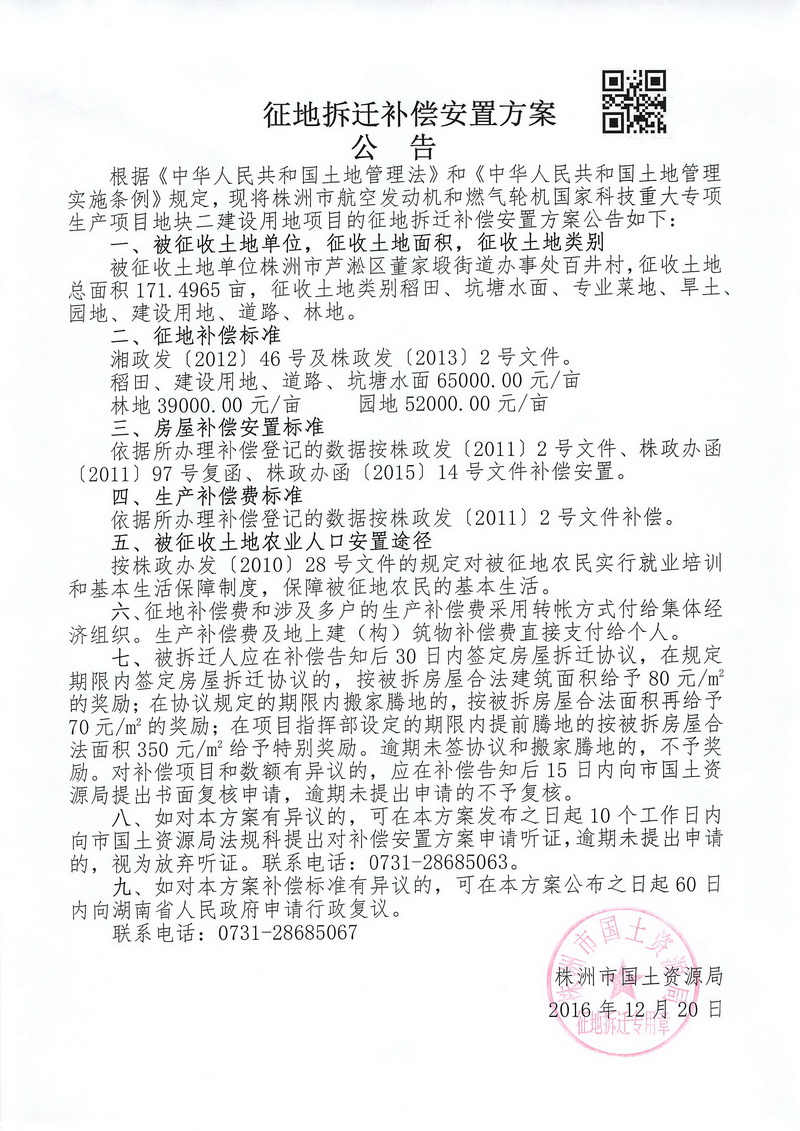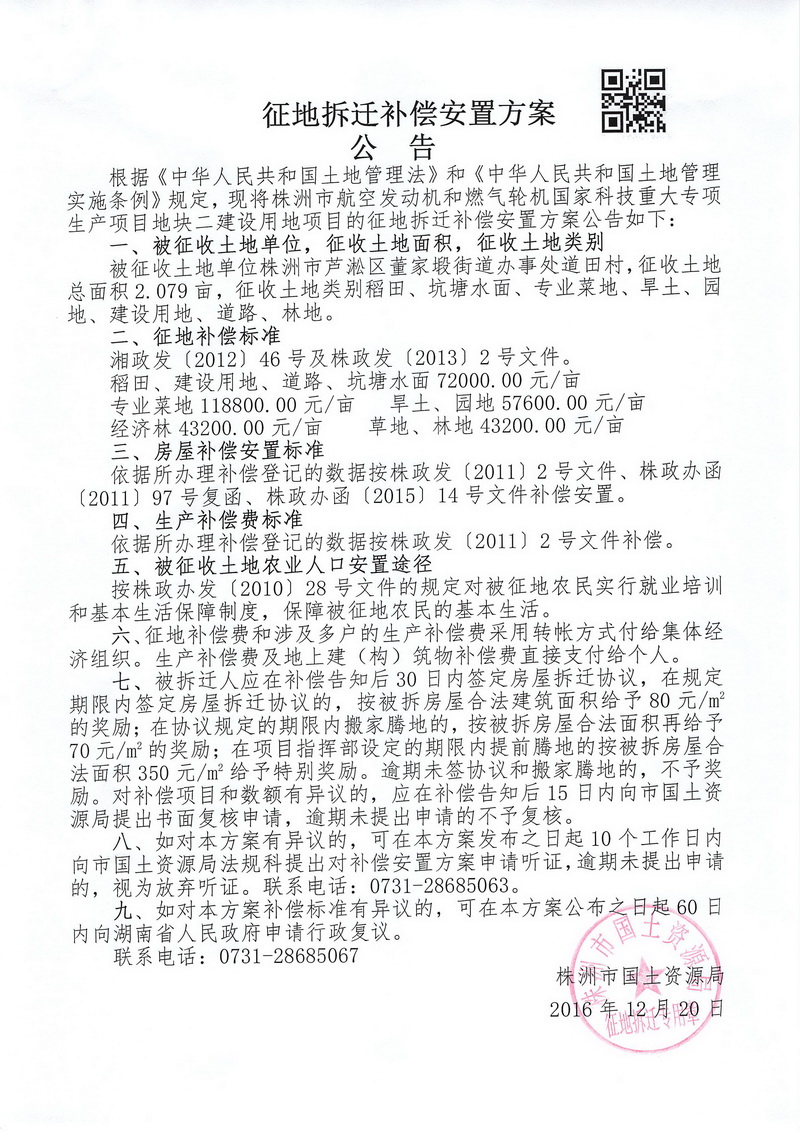 安置公告-株洲市航空发动机和燃气轮机国家科技重大专项生产项目地块二