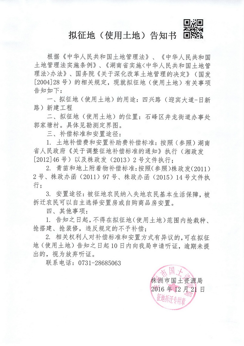 拟征地告知书--四兴路(迎宾大道-日新路)