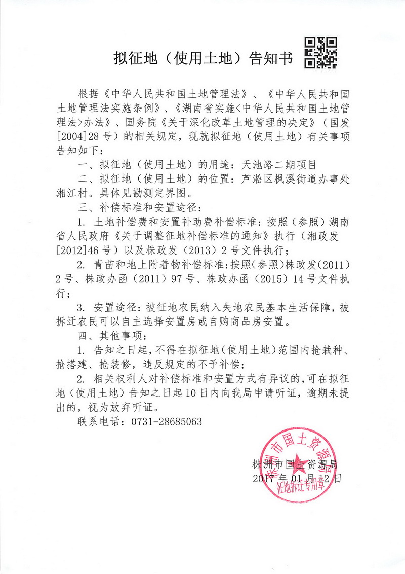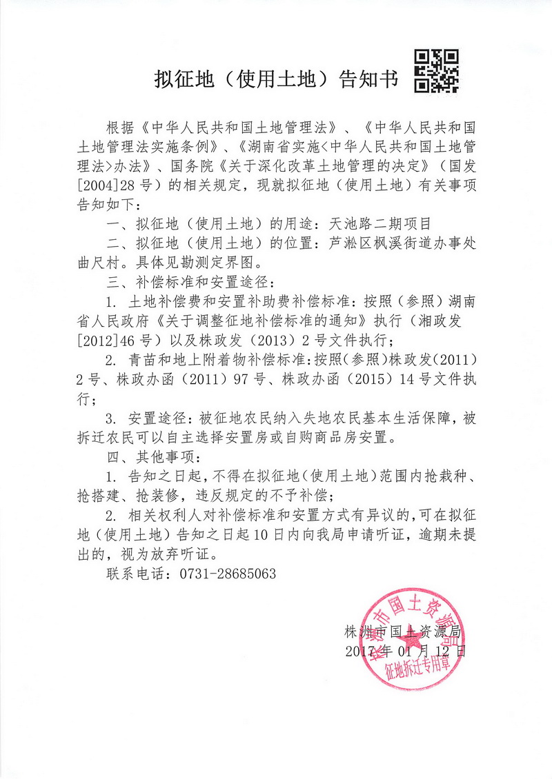 拟征地告知书-天池路二期项目