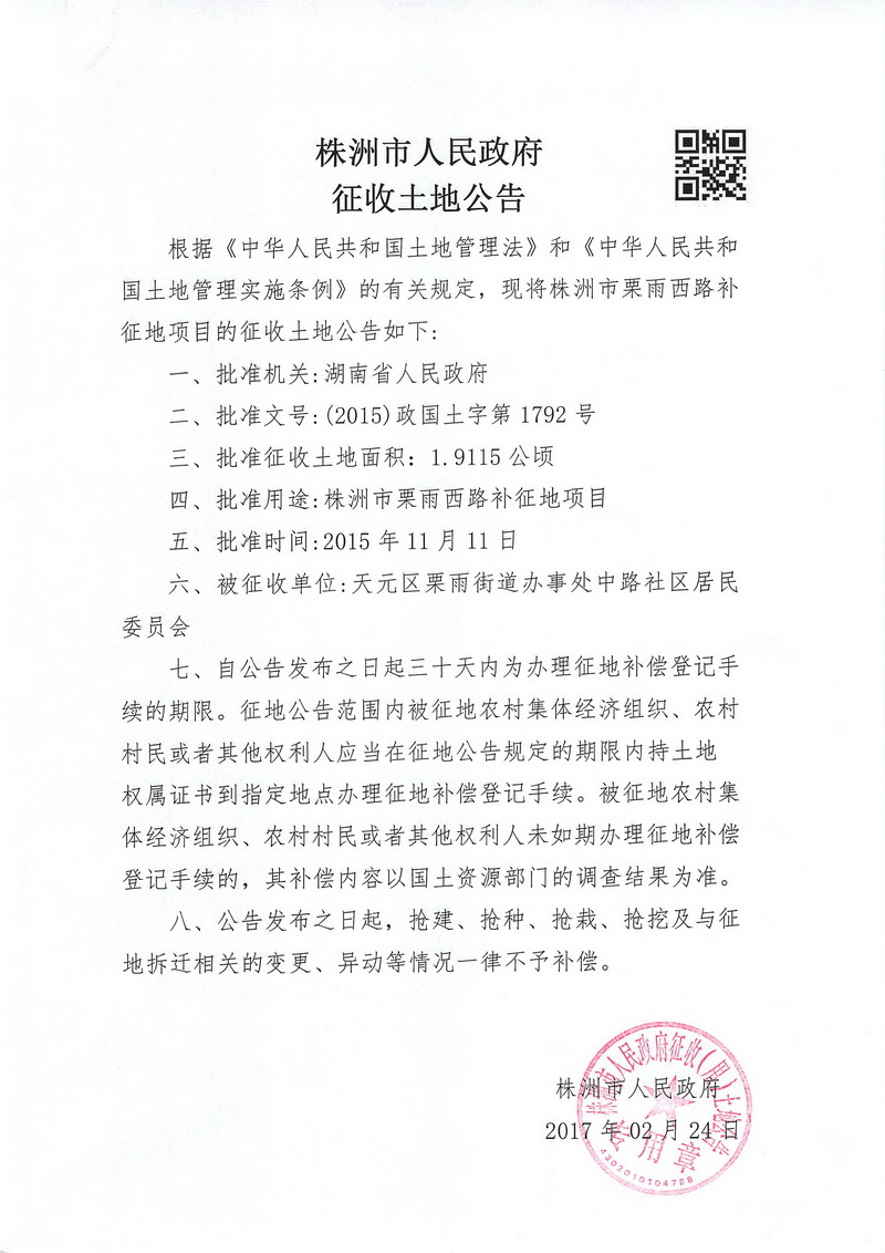 征收公告-栗雨西路补征地项目
