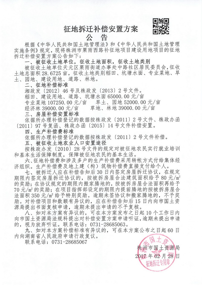 安置公告-株洲市栗雨西路补征地项目