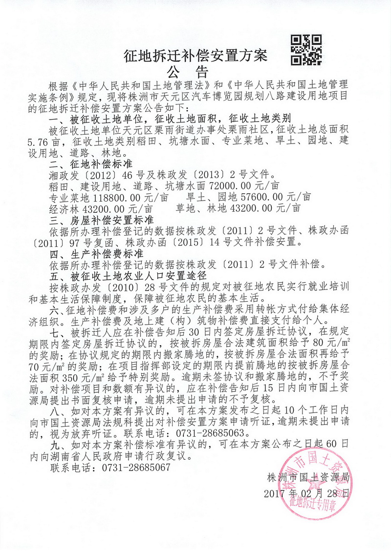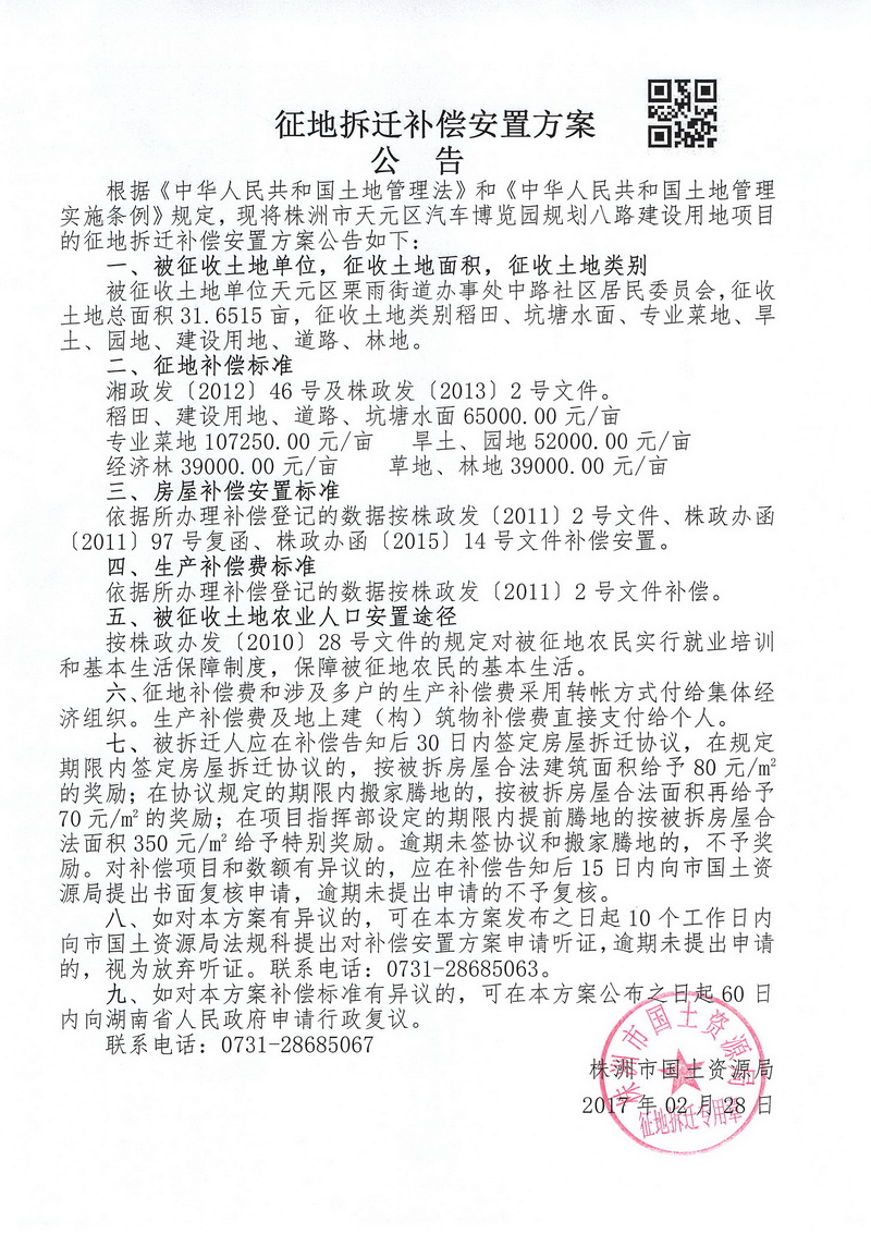 安置公告-株洲市天元区汽车博览园规划八路项目
