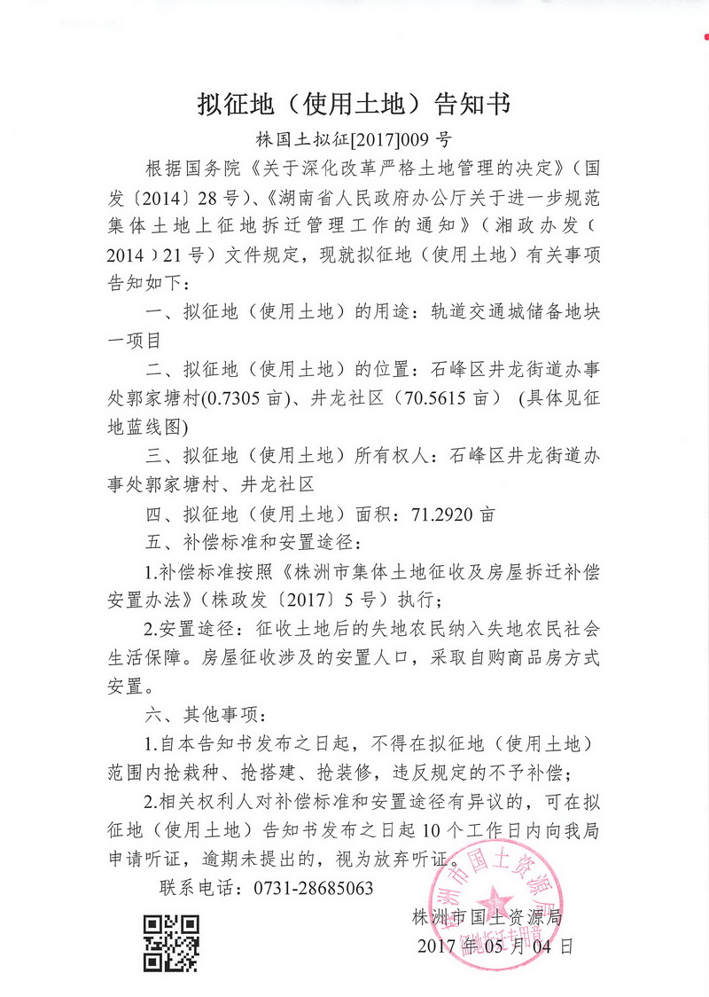 拟征地告知书-轨道交通城储备地块一项目